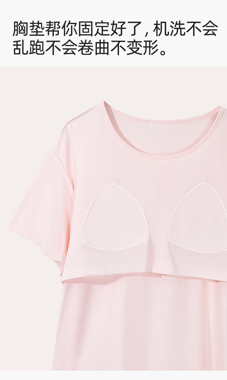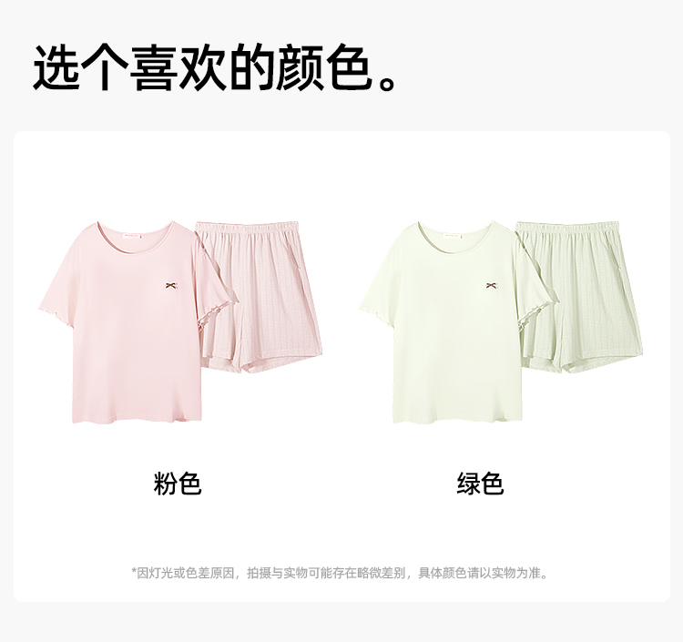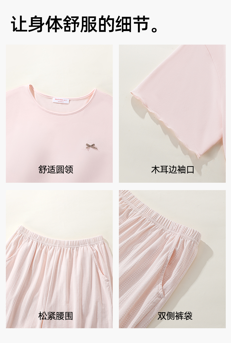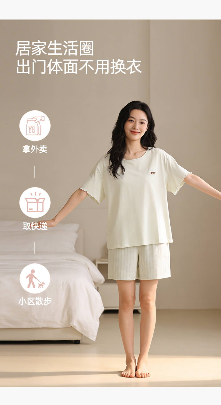 【带杯垫】熳洁儿 莱赛尔棉家居服短袖短裤套装简约甜美木耳边26263207
