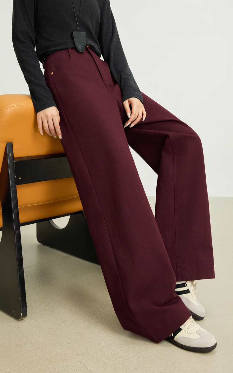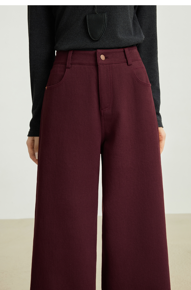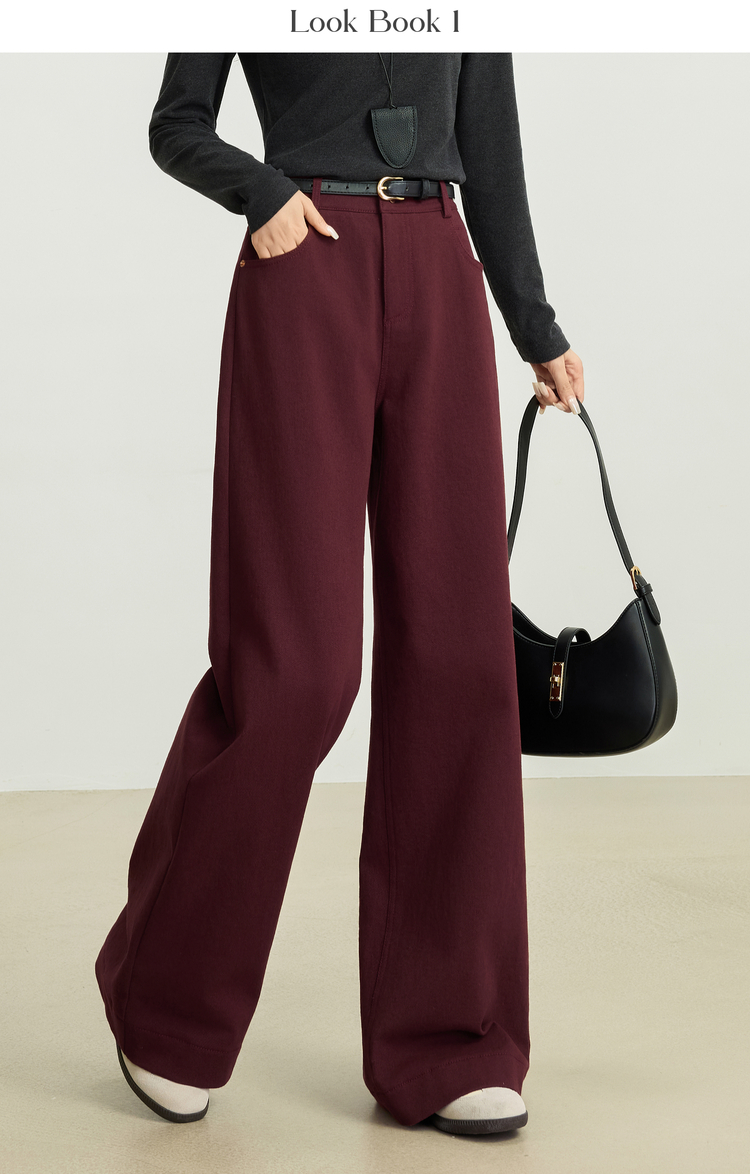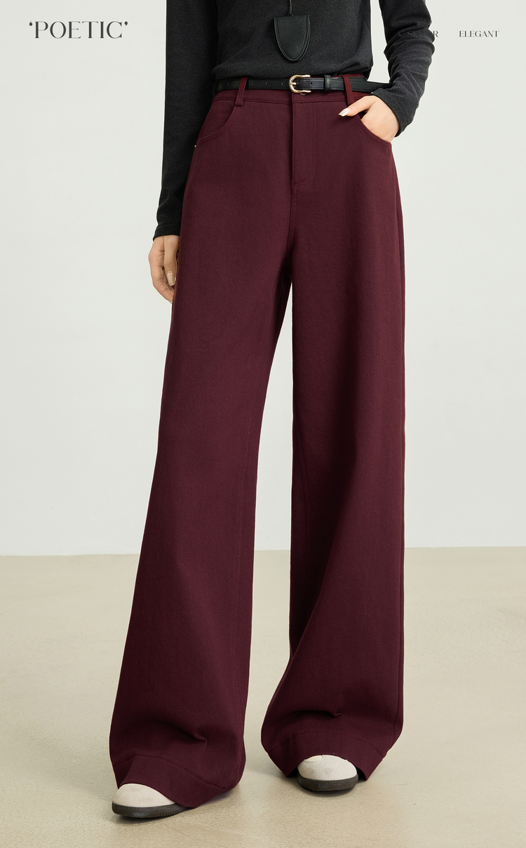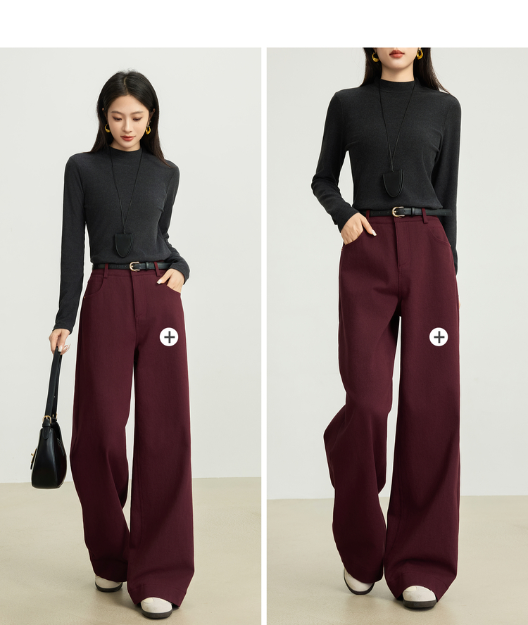 【10/29新品】熙世界老钱复古安可拉红抓毛直筒裤女秋冬加厚宽松休闲窄版阔腿裤