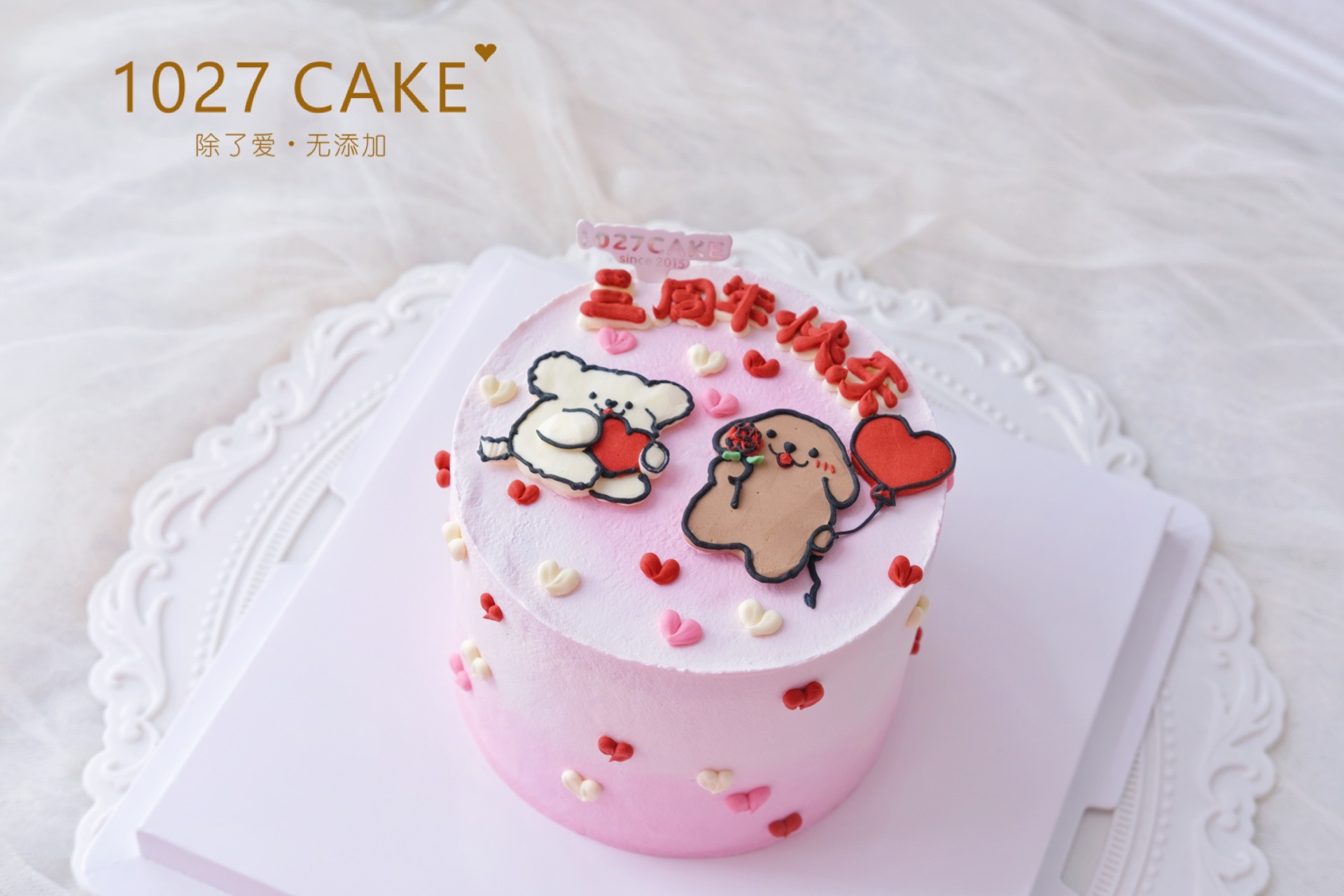 1027CAKE创立于2015年,一路以来,秉承除了爱,无添加的初心,甄选食材,专注研发,坚持最初的那颗心,只想让甜蜜蔓延。