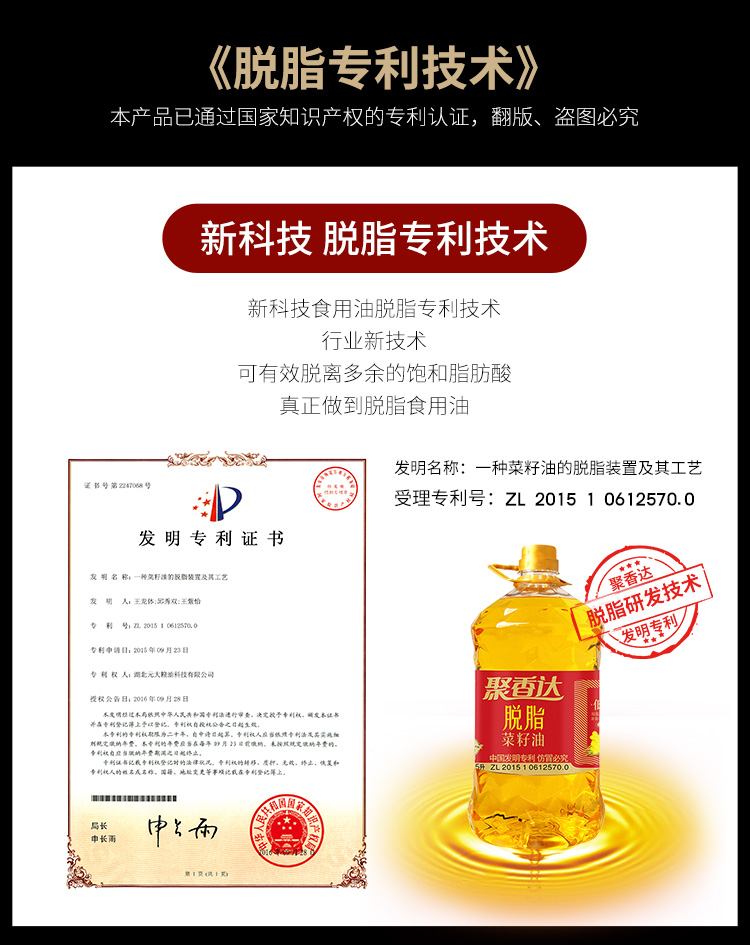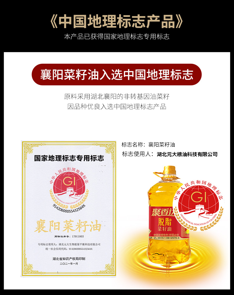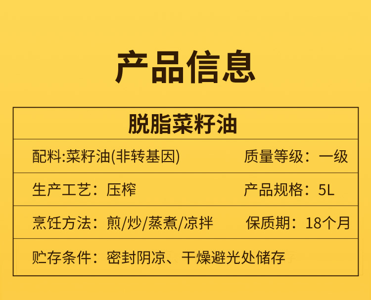 随州聚香达脱脂菜籽油(清香型)5L