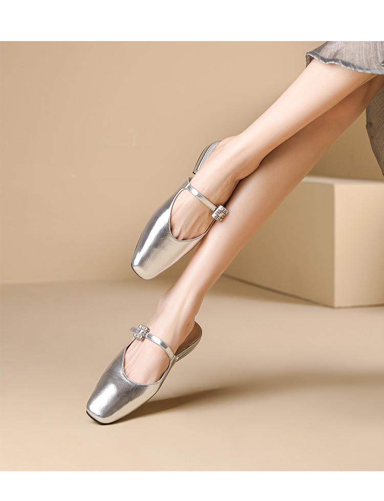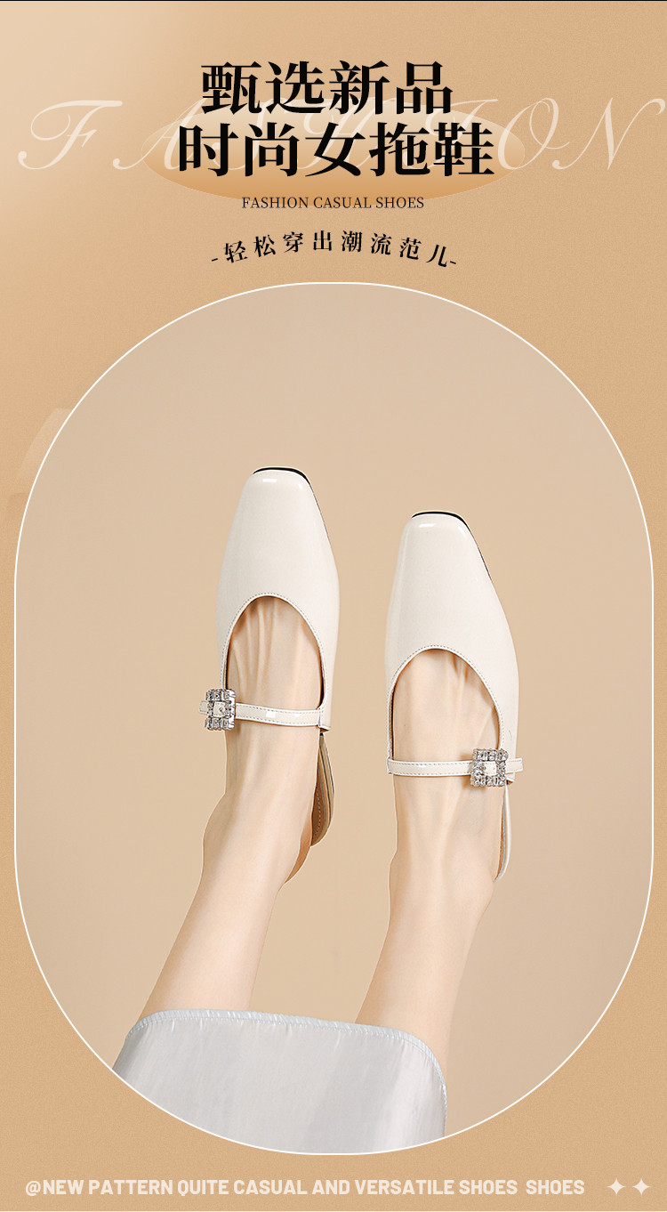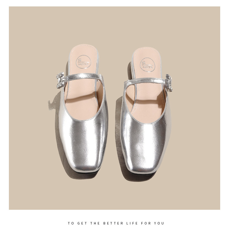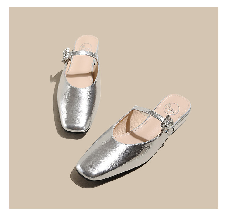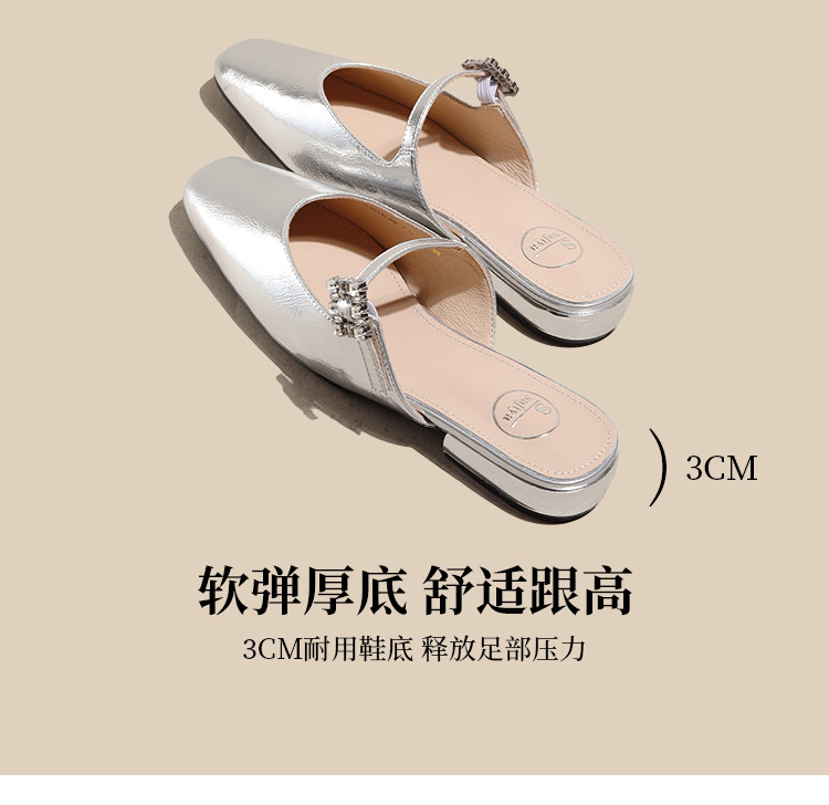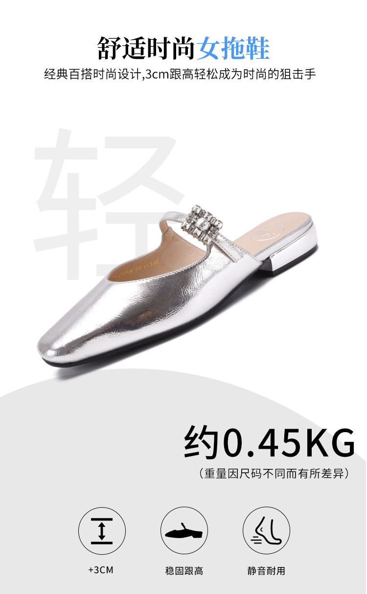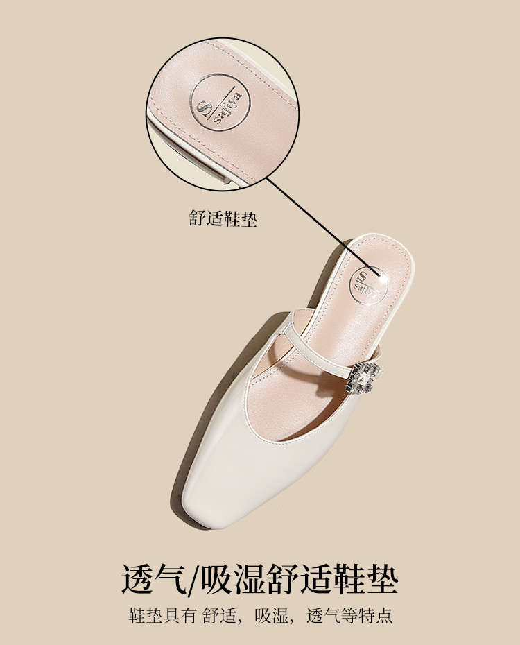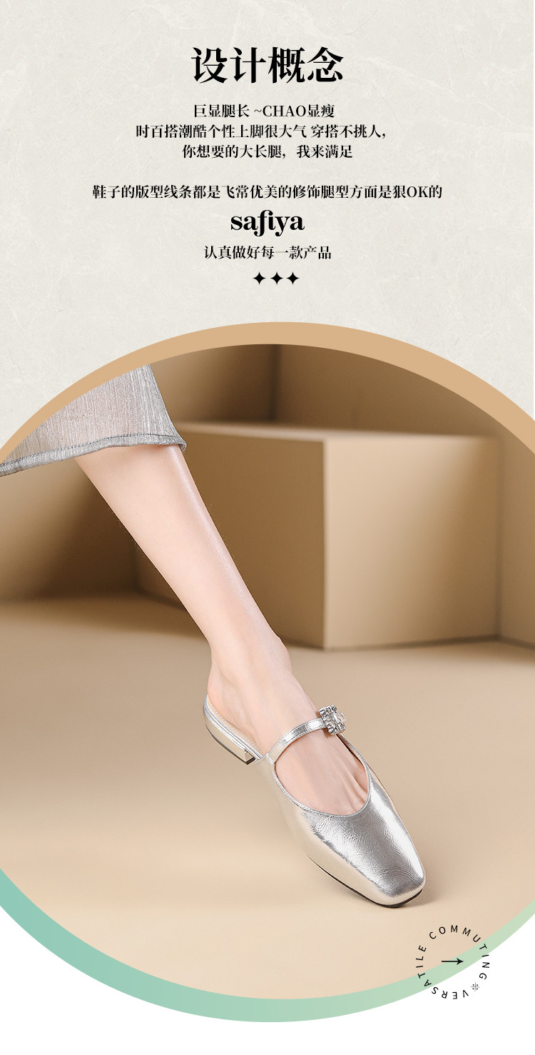 品质好货 | Safiya/索菲娅2024夏时尚气质低跟水钻方头拖鞋穆勒拖 SF42110708