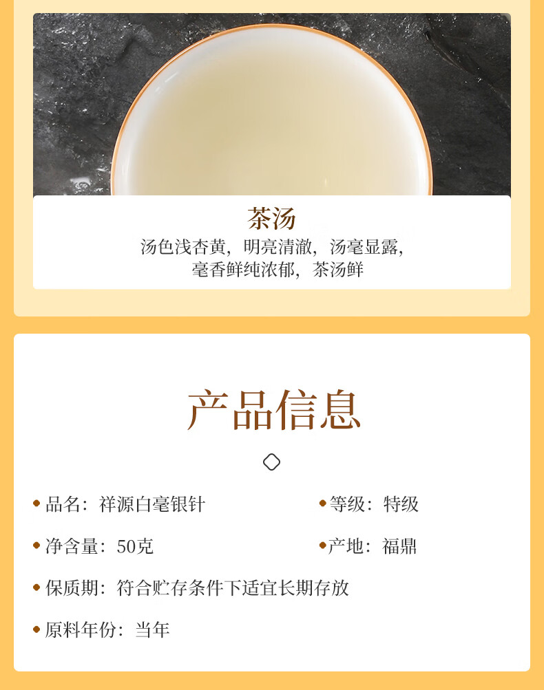 祥源茶 白毫银针 2022年 首春芽 50g