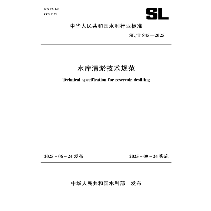 SL/T845-2025水库清淤技术规范(中华人民共和国水利行业标准)