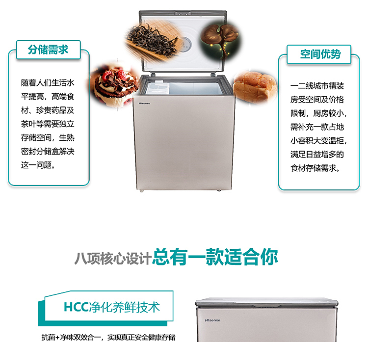 海信(hisense) 160升 冷柜 电脑温控 BD/BC-160NGT 伯雅灰