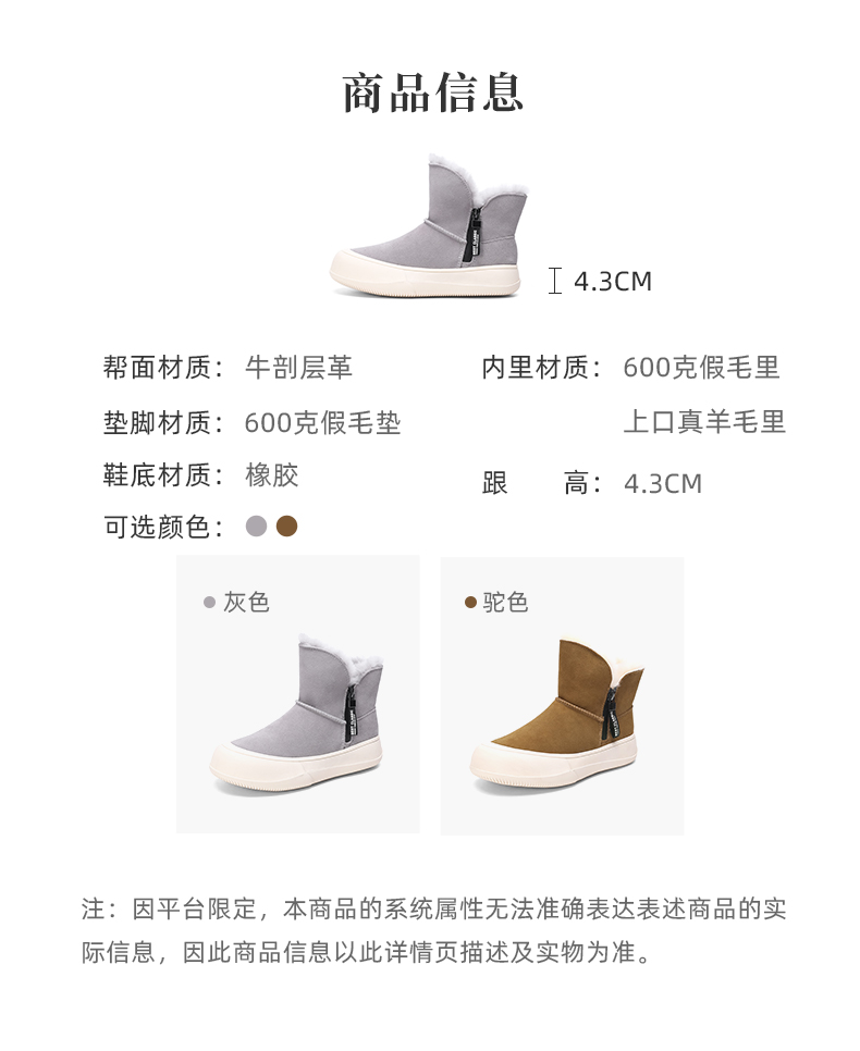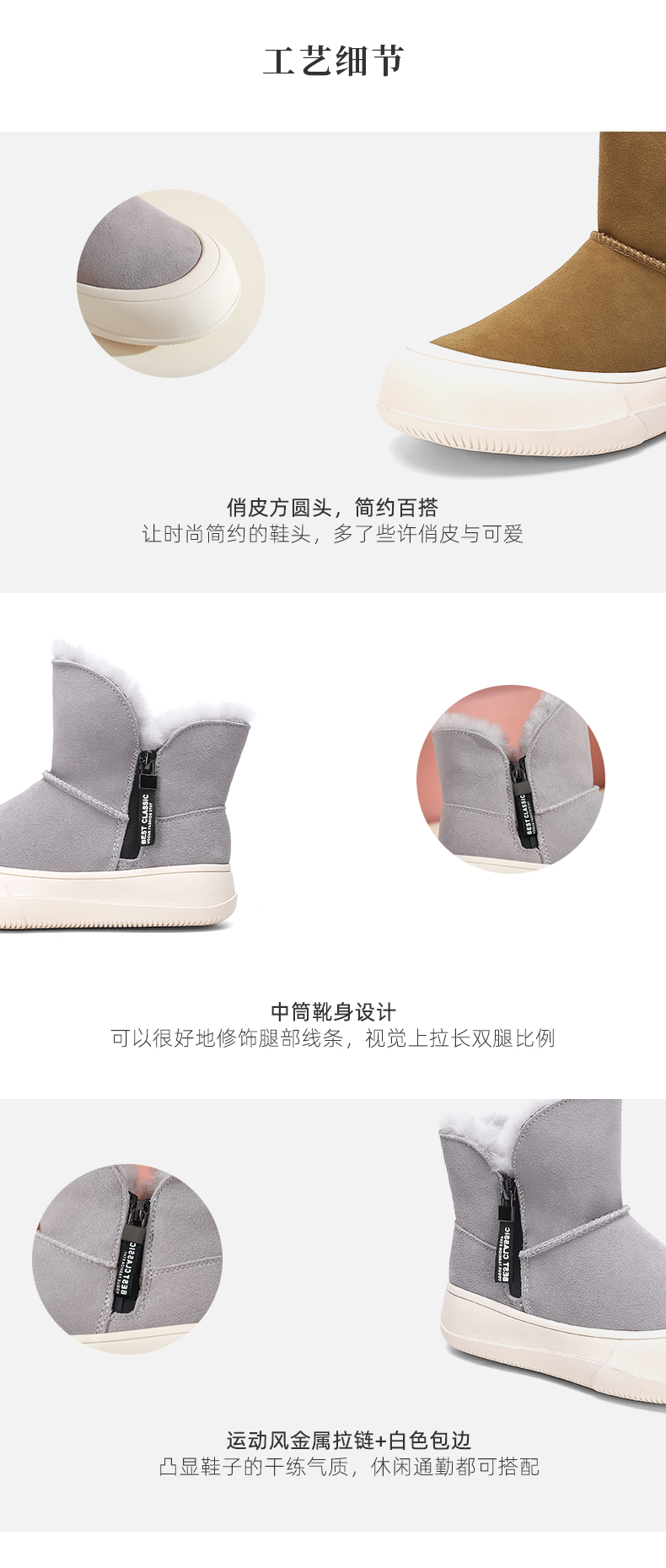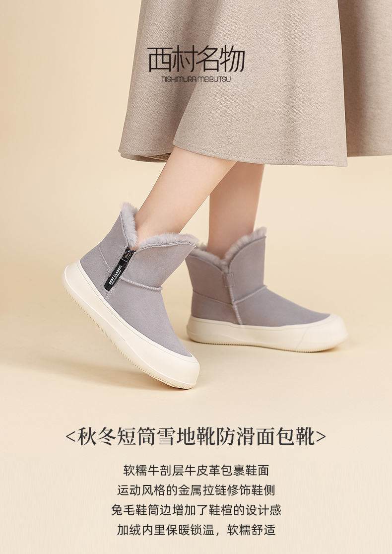 西村名物秋冬雪地靴2022年新款百搭加绒棉鞋女靴短靴棉靴45141