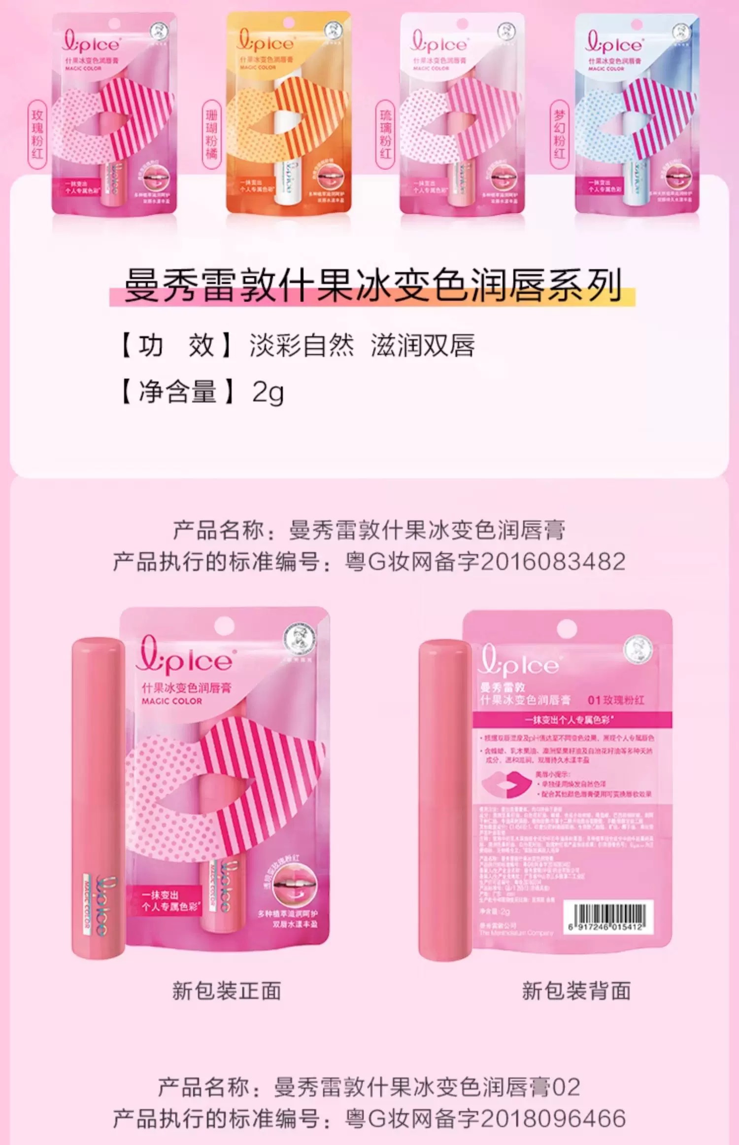 曼秀雷敦什果冰变色润唇膏