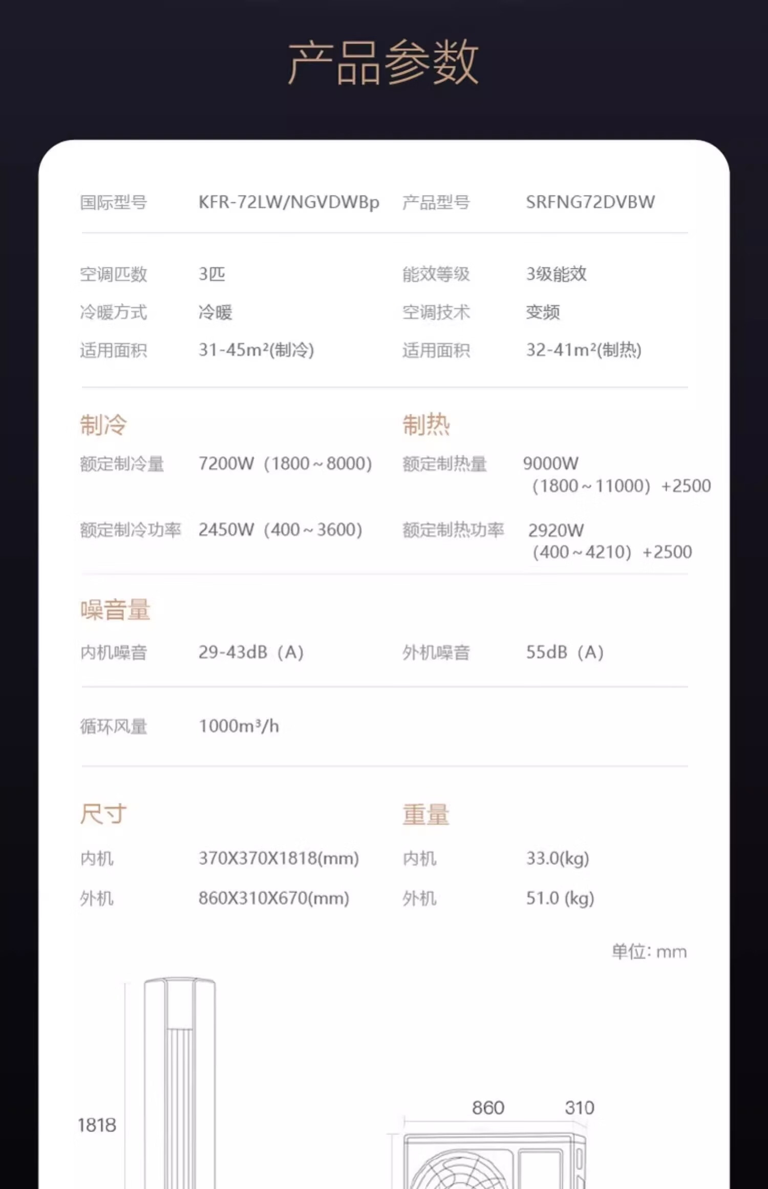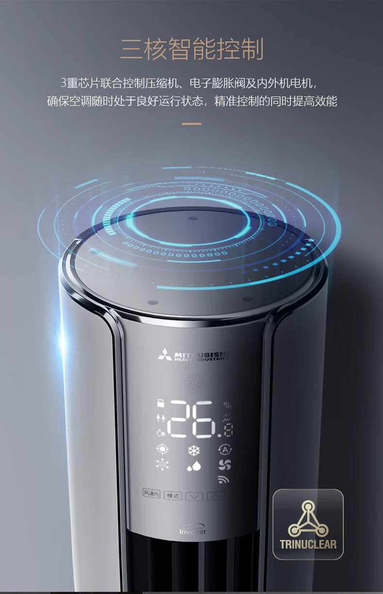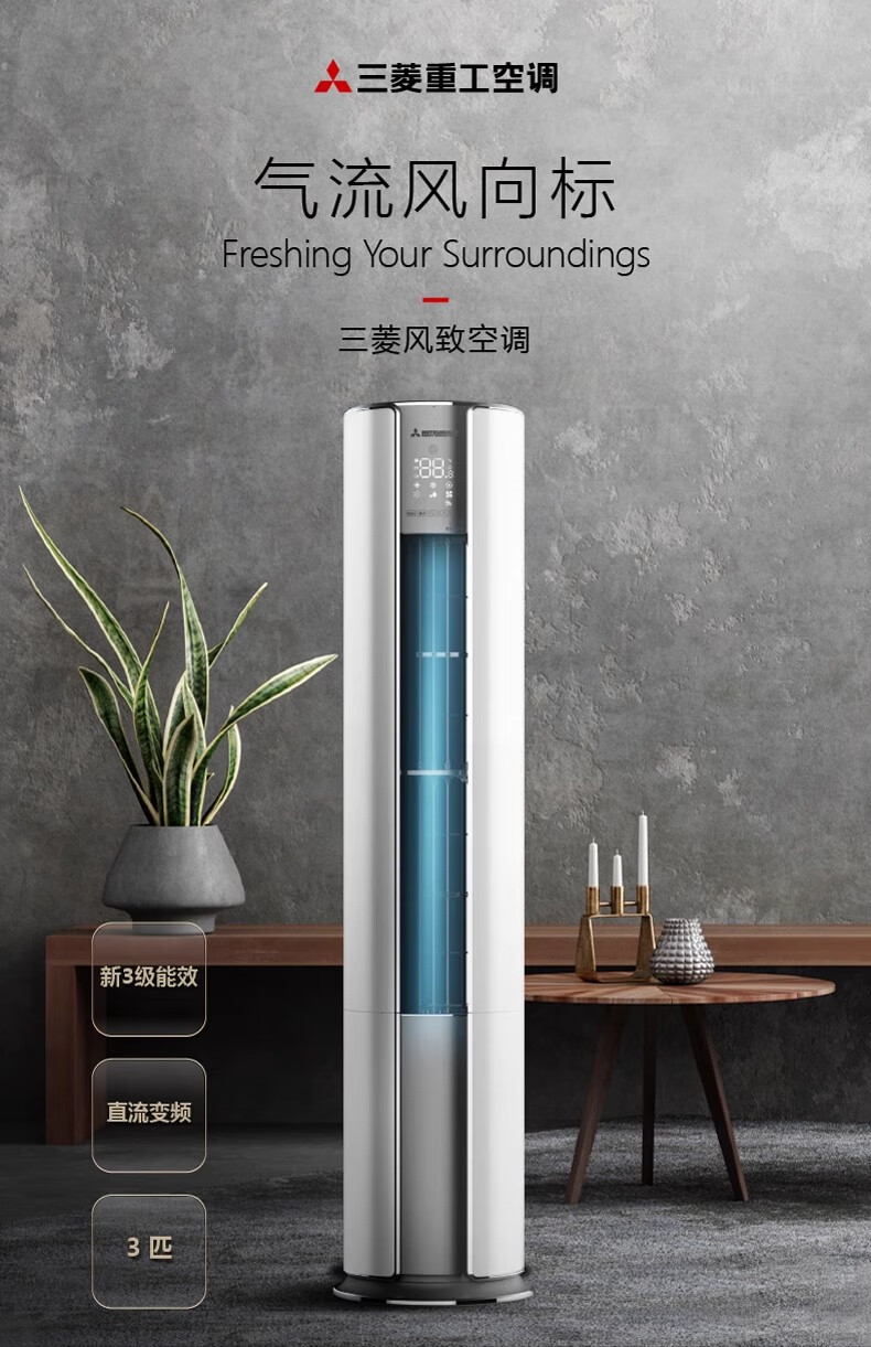 三菱重工空调 3匹空调 新三级能效 智能电辅热 智能水洗 家用客厅空调立式 圆柱空调柜机 SRFNG72DVBW
