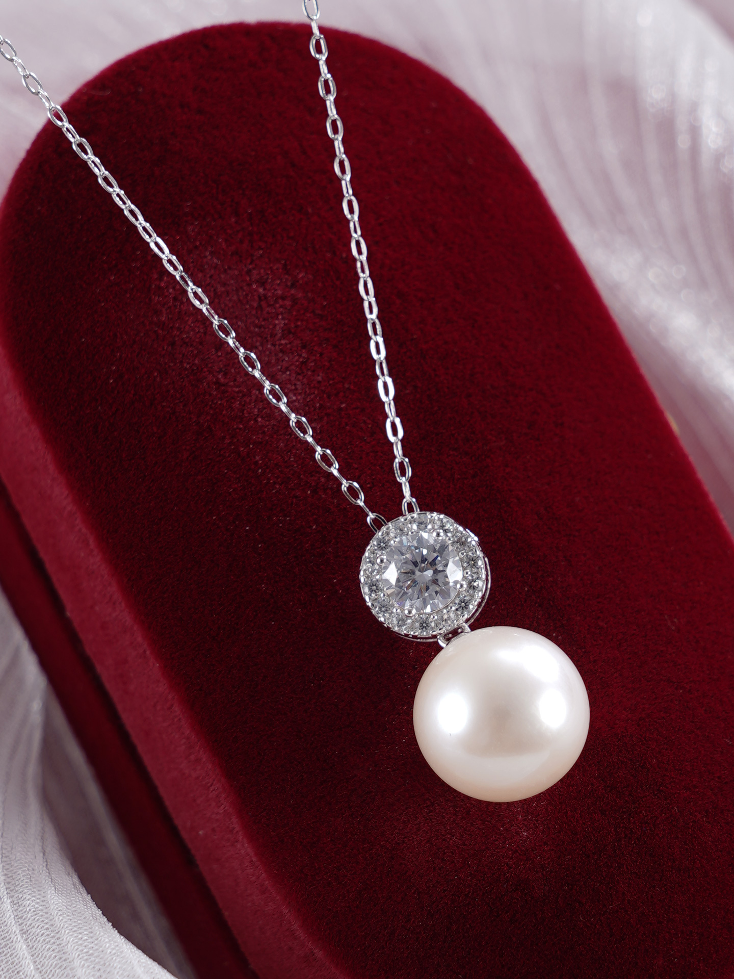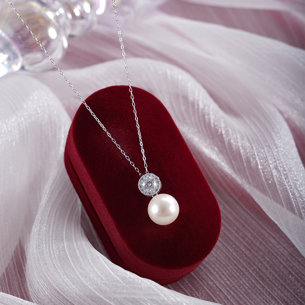 子佩集【璀璨时光】银S925珍珠惜王妃套链【MLTL018】10mm珠吊球圆形圆钻2601