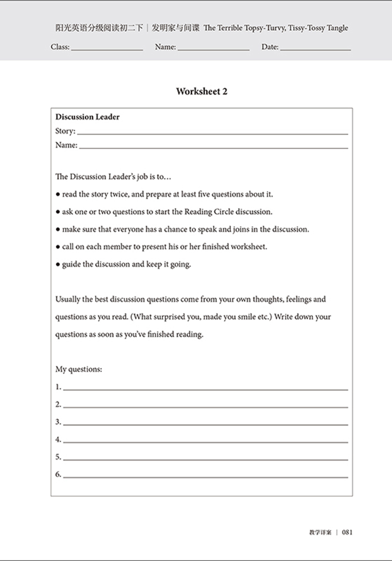 •配合“阳光英语分级阅读”读物使用,帮助老师上好英语阅读/读写课