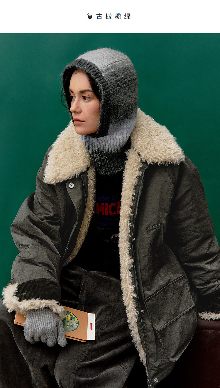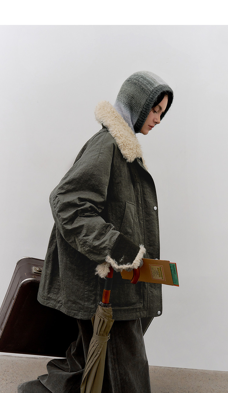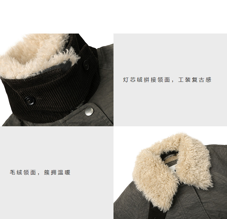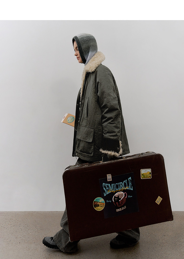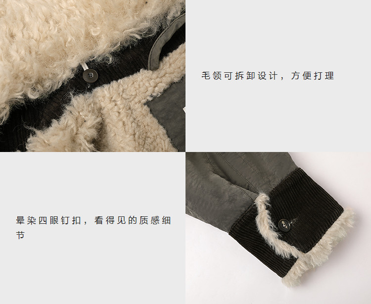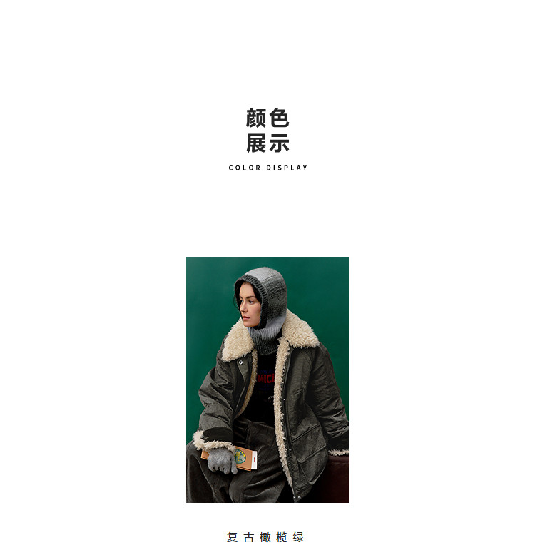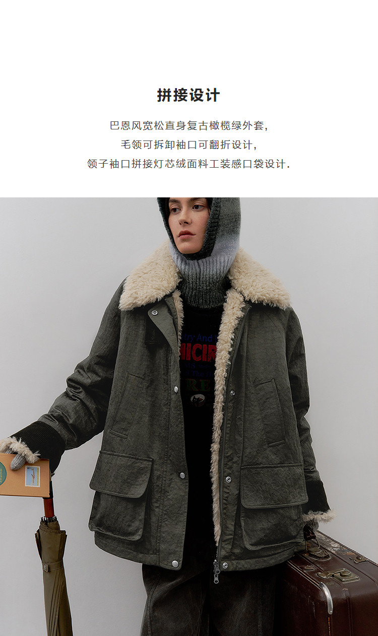半圆/D5621730/巴恩风宽松休闲可拆卸毛领工装外套