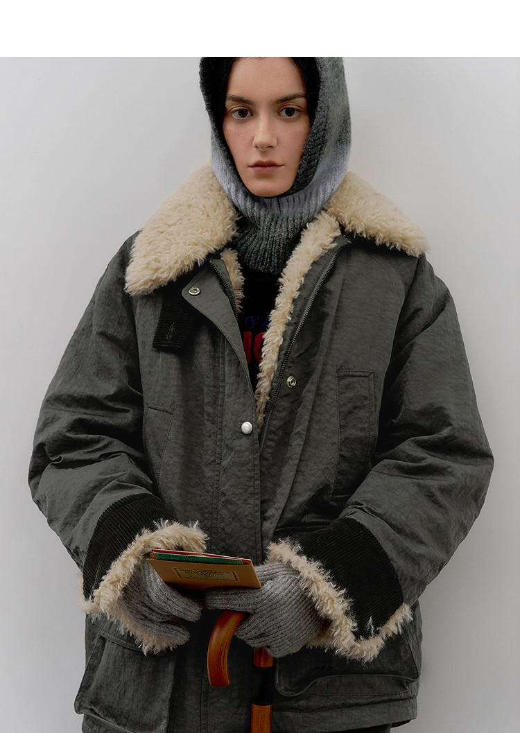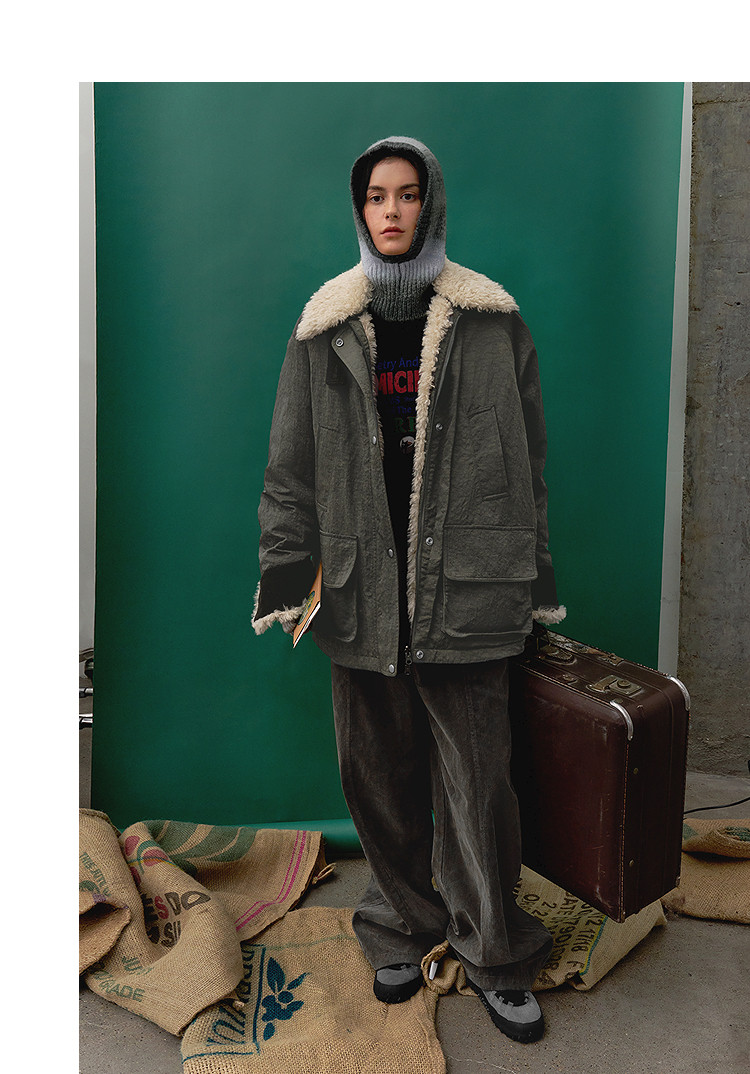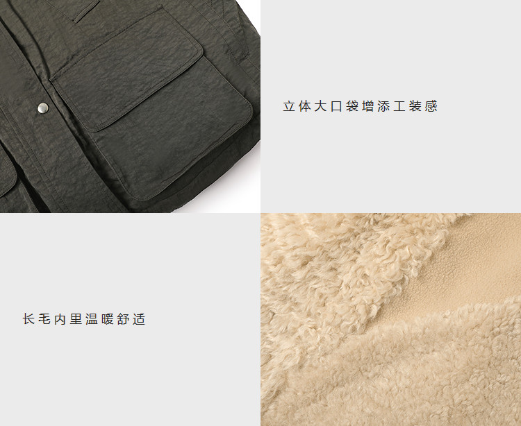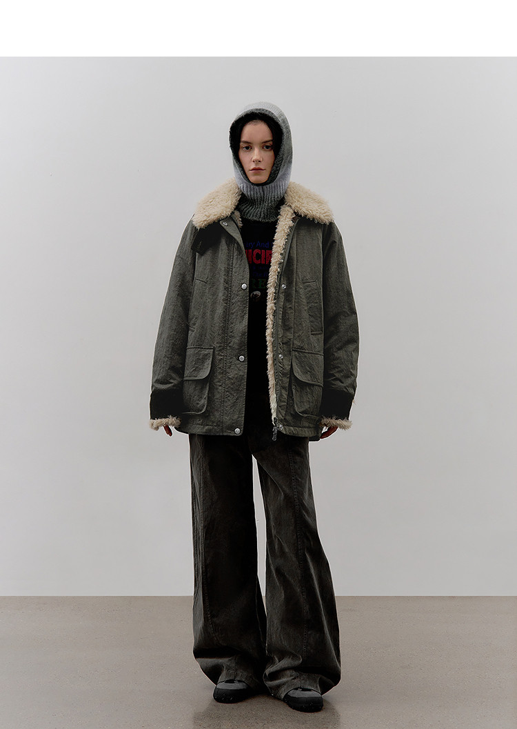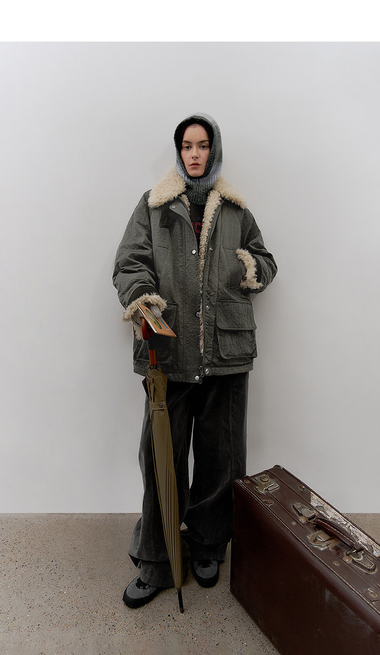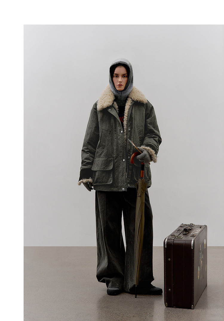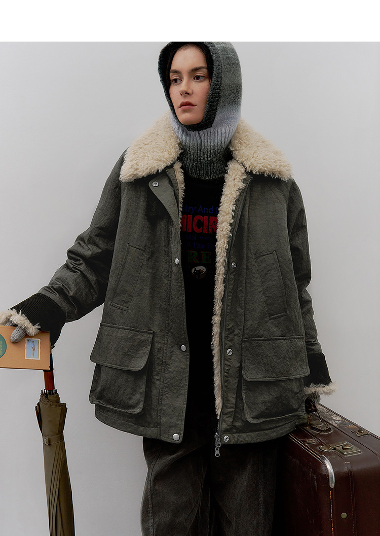 半圆/D5621730/巴恩风宽松休闲可拆卸毛领工装外套