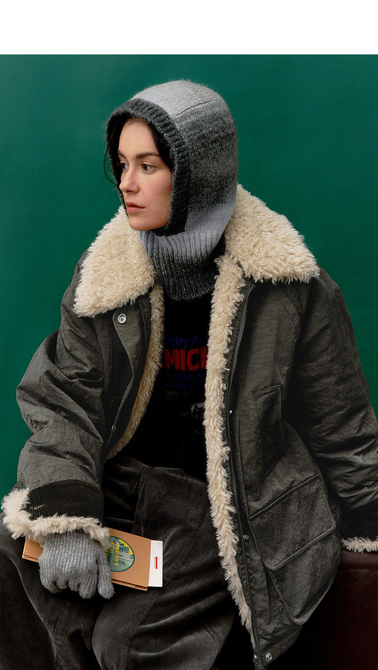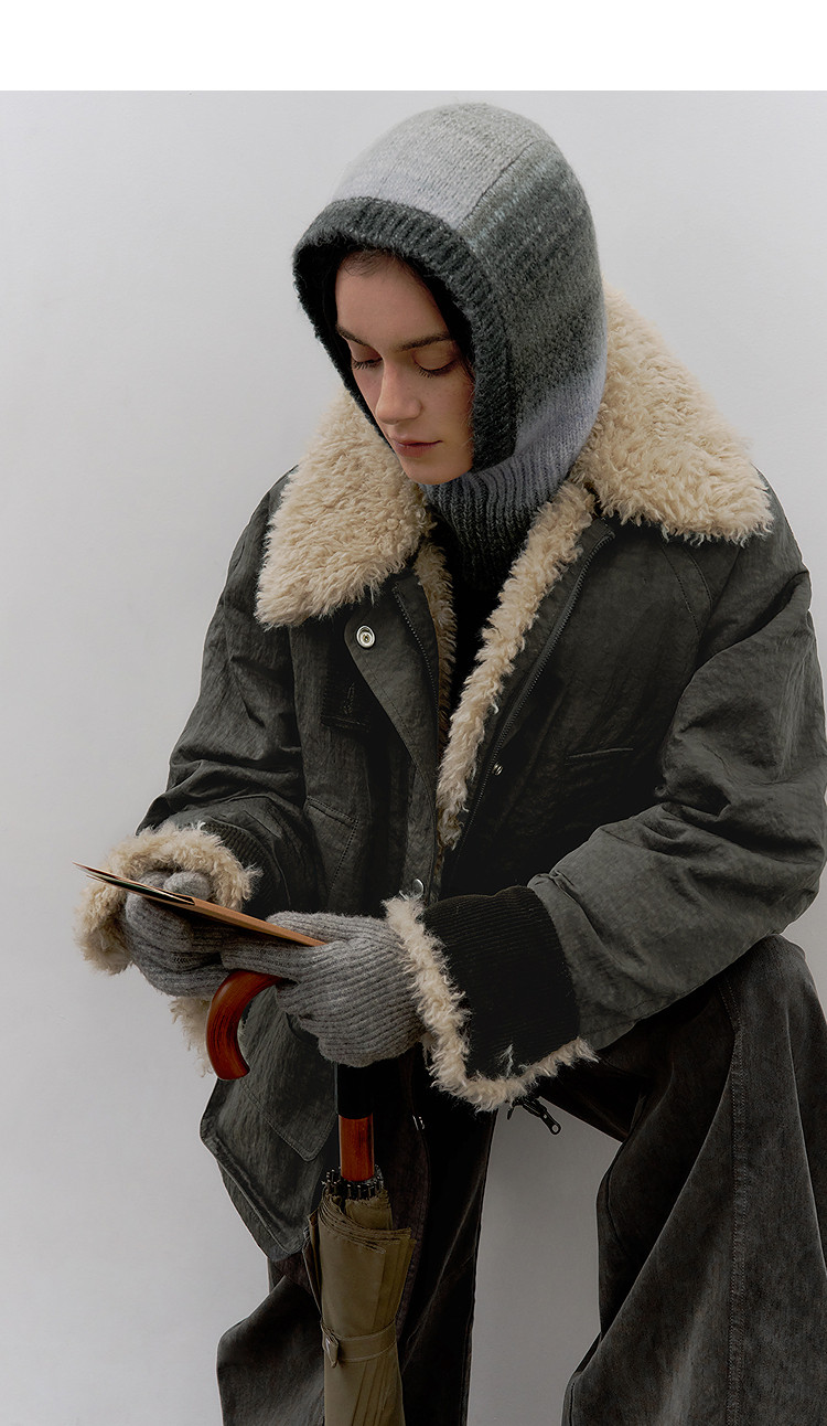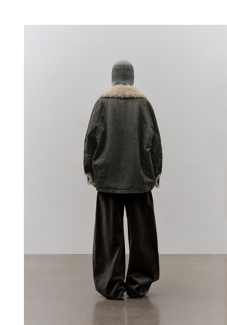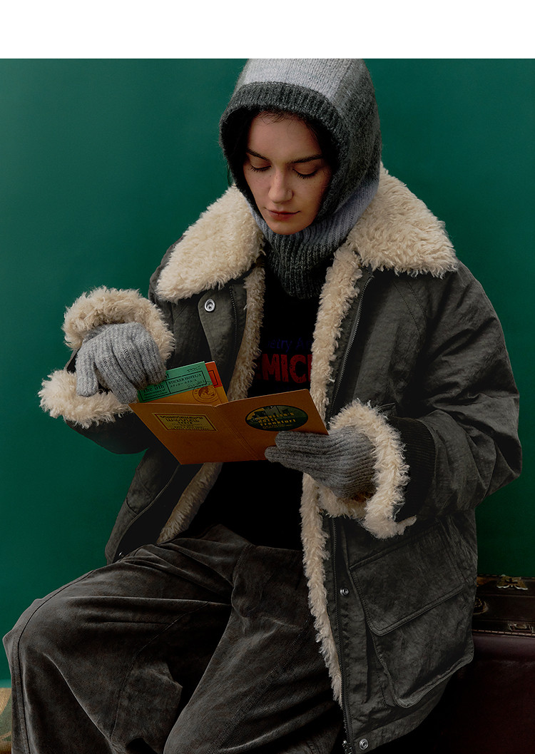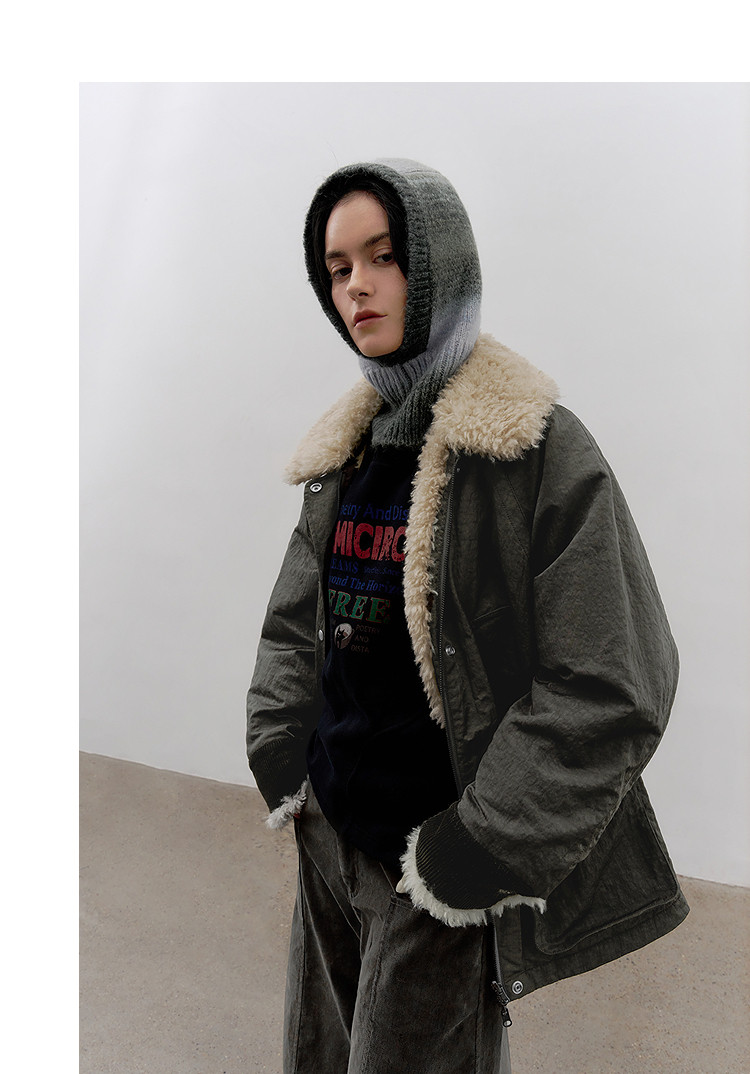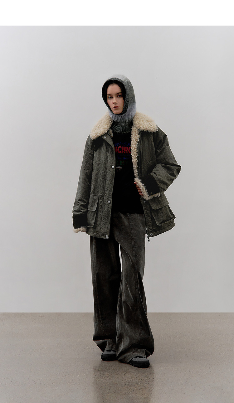 半圆/D5621730/巴恩风宽松休闲可拆卸毛领工装外套