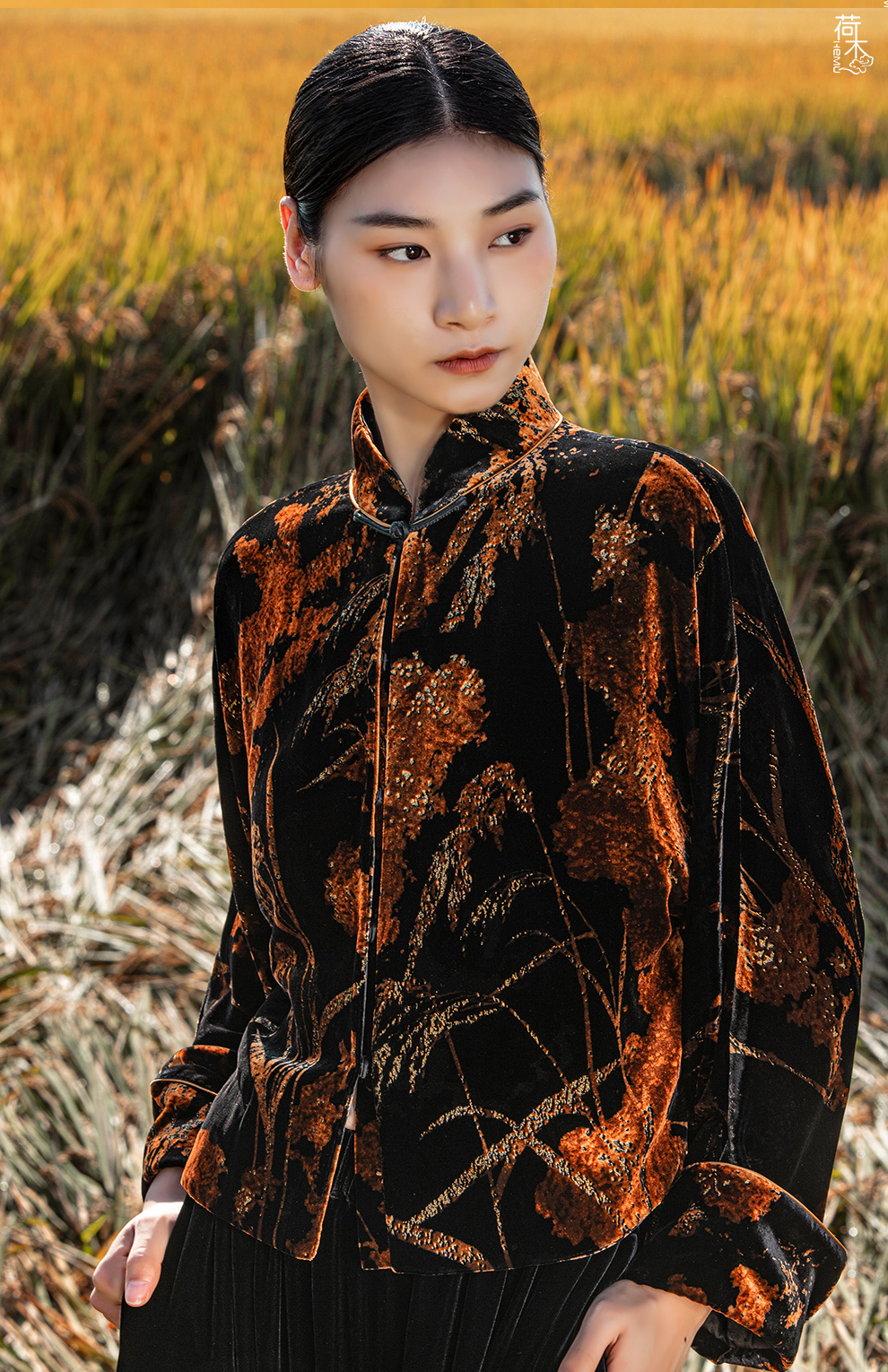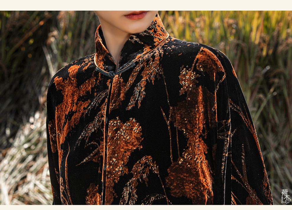 荷木HEMU入画·大提花香云纱立领长外套
