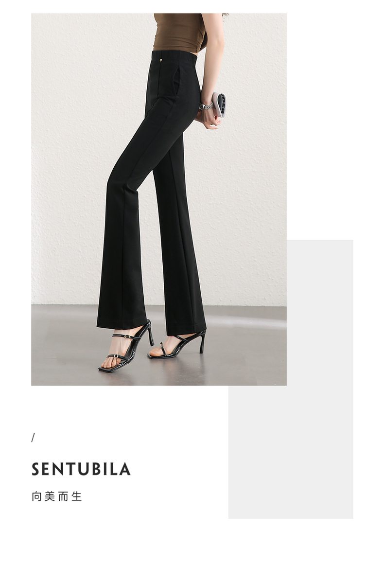 【内购】飒美利落气质通勤OL显瘦时髦复古高腰显瘦微嗽长裤-153KE4653X