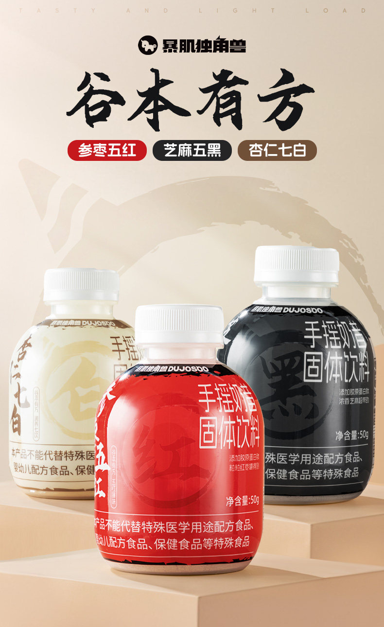 【临期清仓,原价9.9一瓶,现在发3瓶!】暴肌独角兽代餐奶昔中式谷本瓶装高蛋白速食冲饮营养