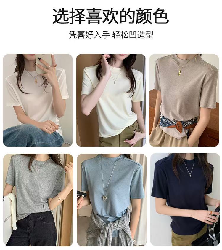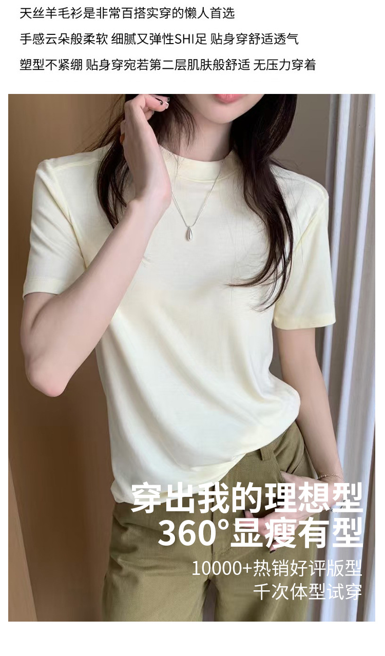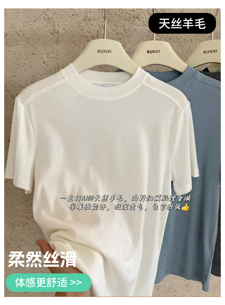 【任选两件】ZI.ZAI子载天丝正肩T恤,‘凉爽轻柔’A100莱赛尔天丝羊毛材质垂感好;吸湿透气不闷热,正肩版型气质显瘦。