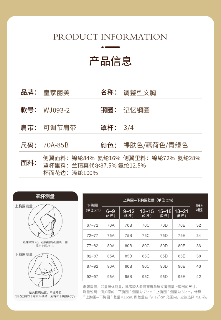 皇家丽美小胸聚拢调整型文胸棉上托收副乳小胸显大内衣WJ093-2
