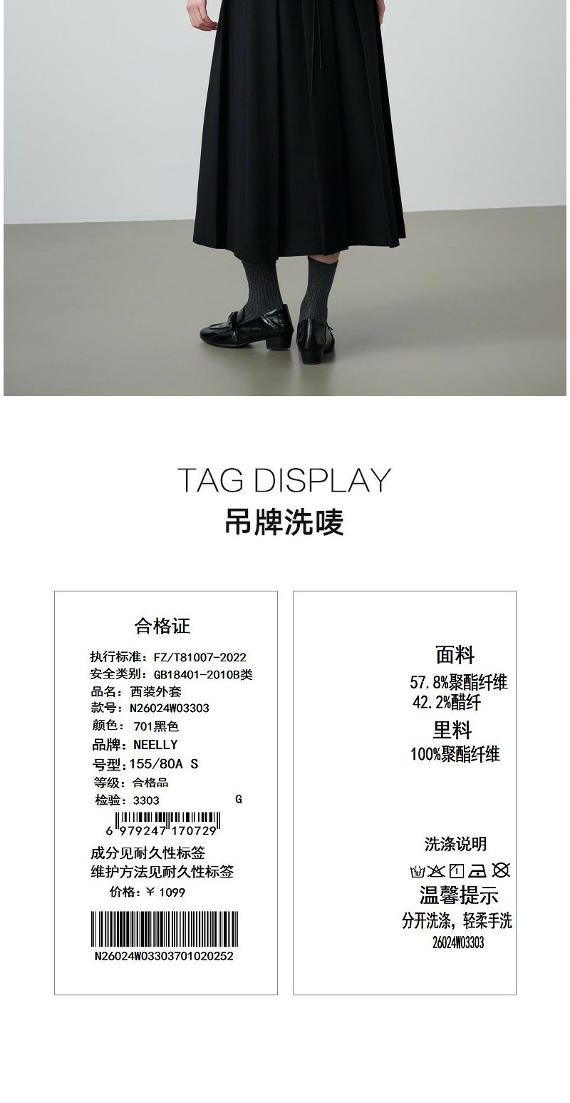 NEELLY纳俪商场同款春季新款气质通勤垂感西装女随性百搭翻领外套N26024W03303