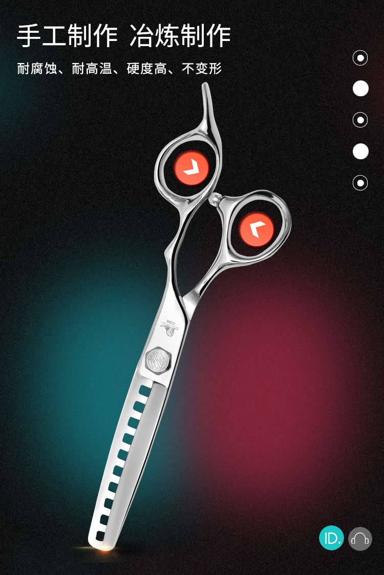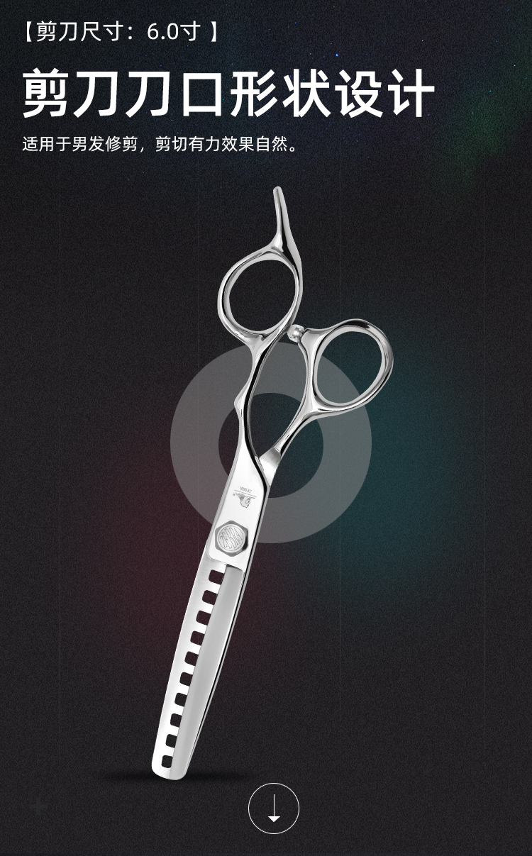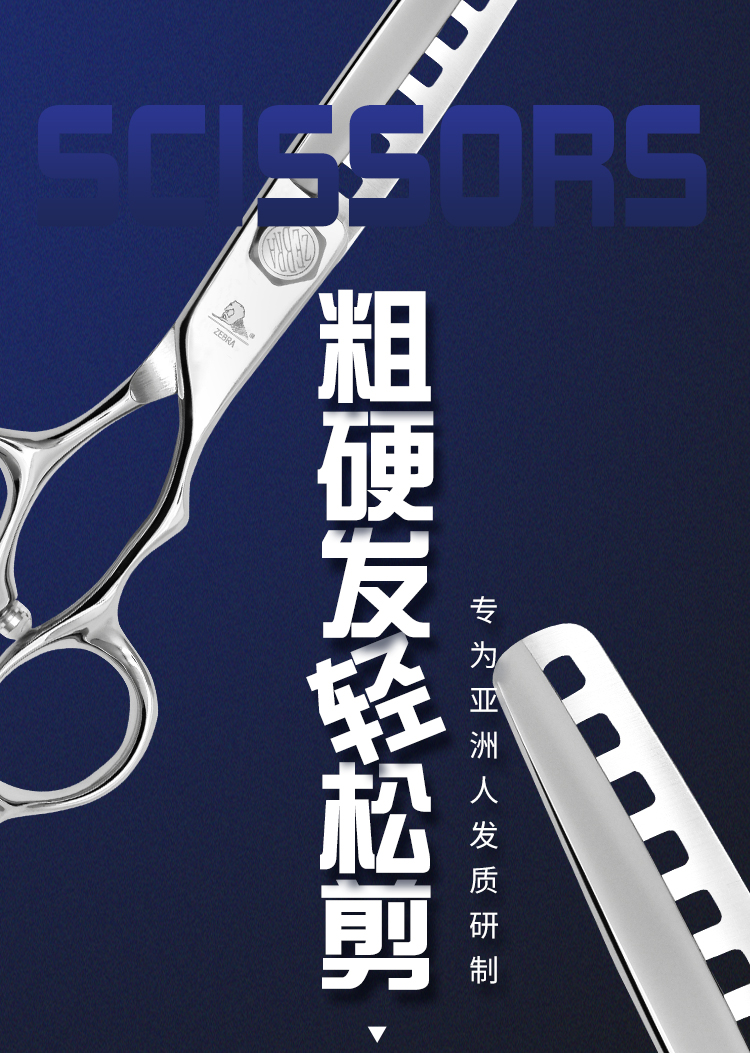ZEBRA斑马牙剪Z76 去发量40%-50%男发逆刃牙剪 鹿角齿宽齿型设计适用于男发修剪,剪切有力效果自然。