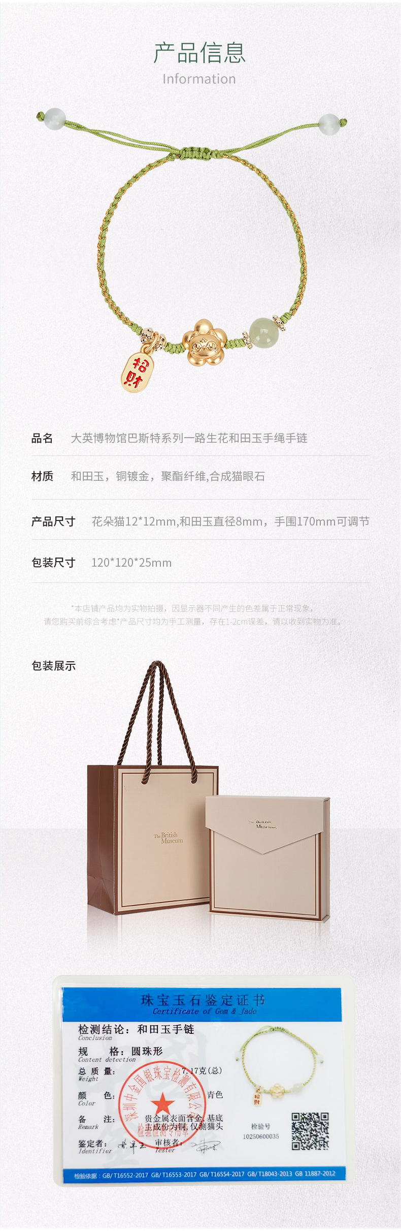 大英博物馆 巴斯特系列 一路生花和田玉 手绳手链