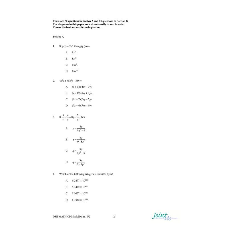 本產品是文憑試 DSE適用的Mock to Success DSE Mathematics - F6 Compulsory Part