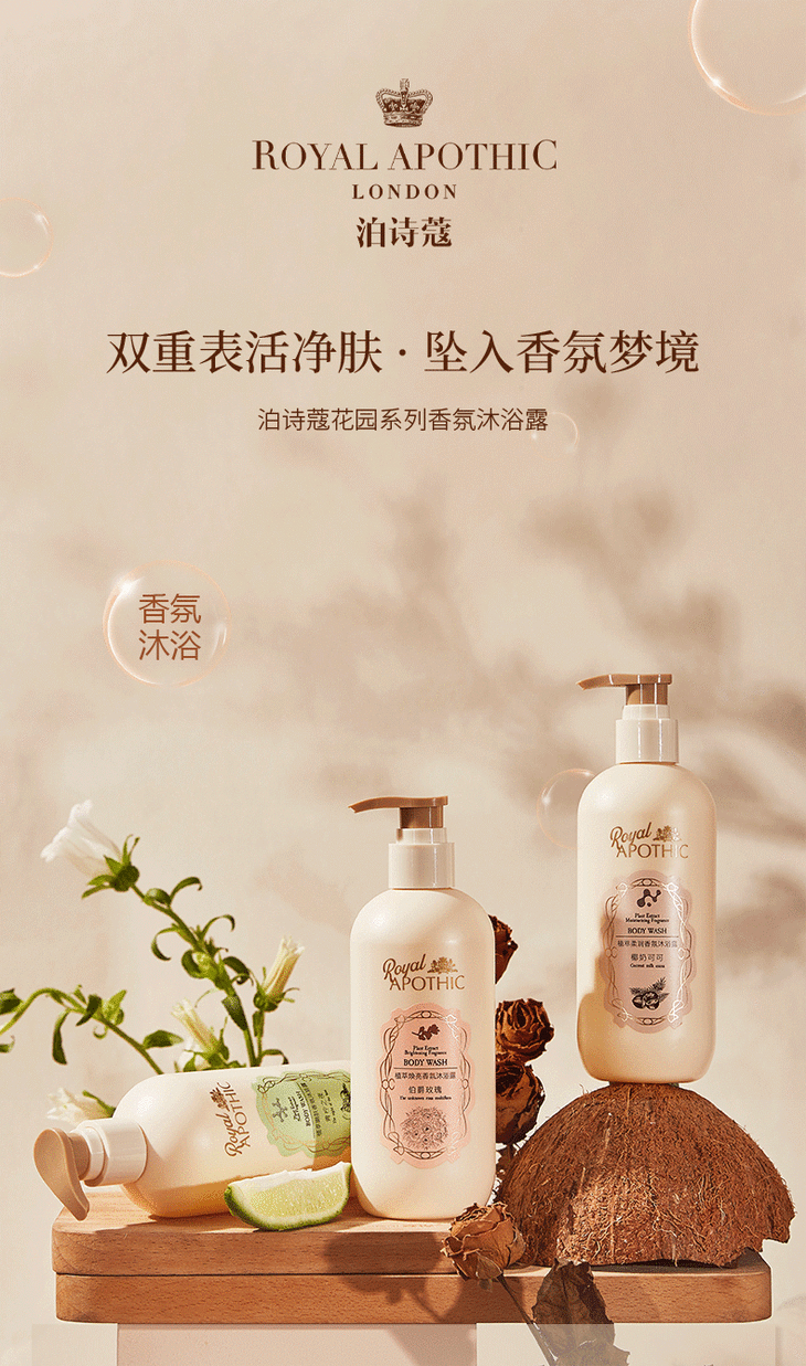 好闻梦镜香!泊诗蔻花园系列身体乳 香氛沐浴露植萃焕亮柔润嫩滋润留香