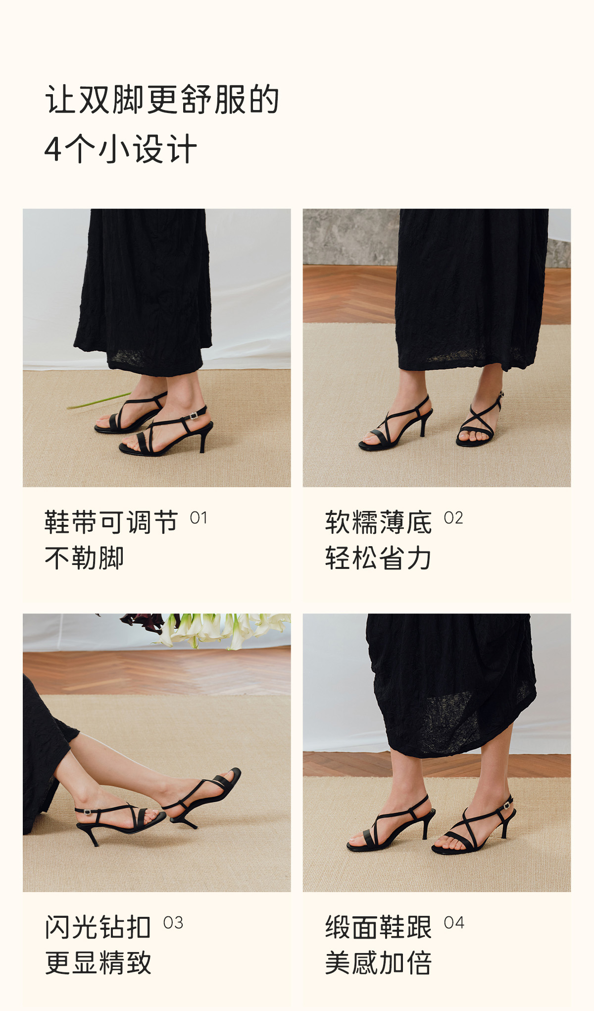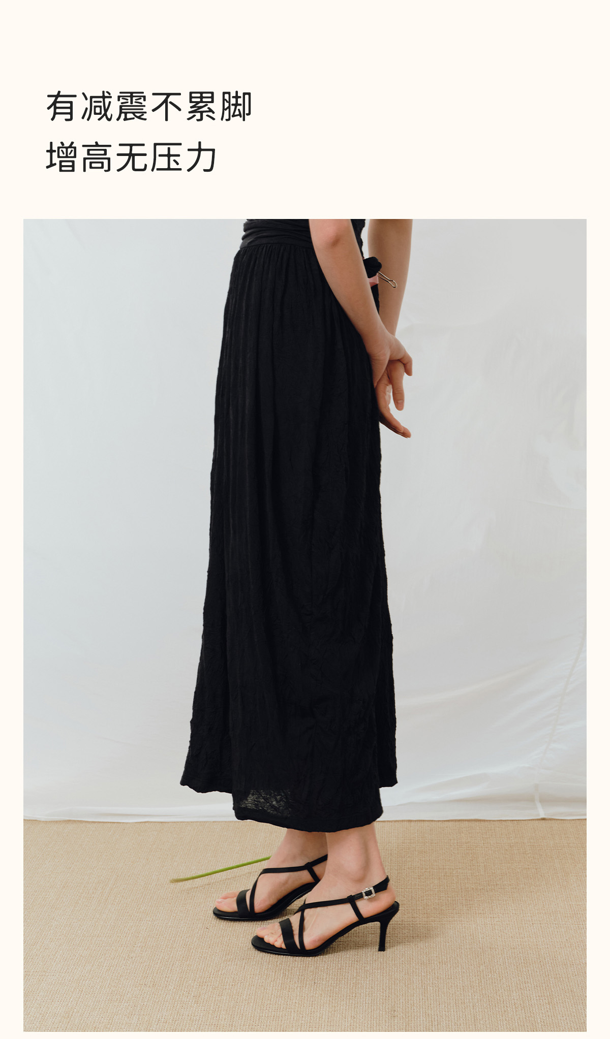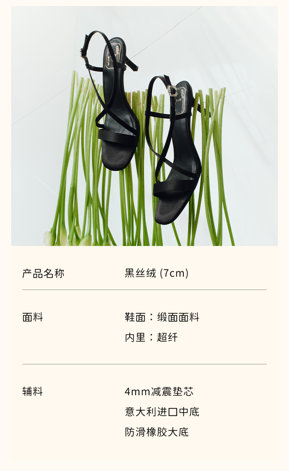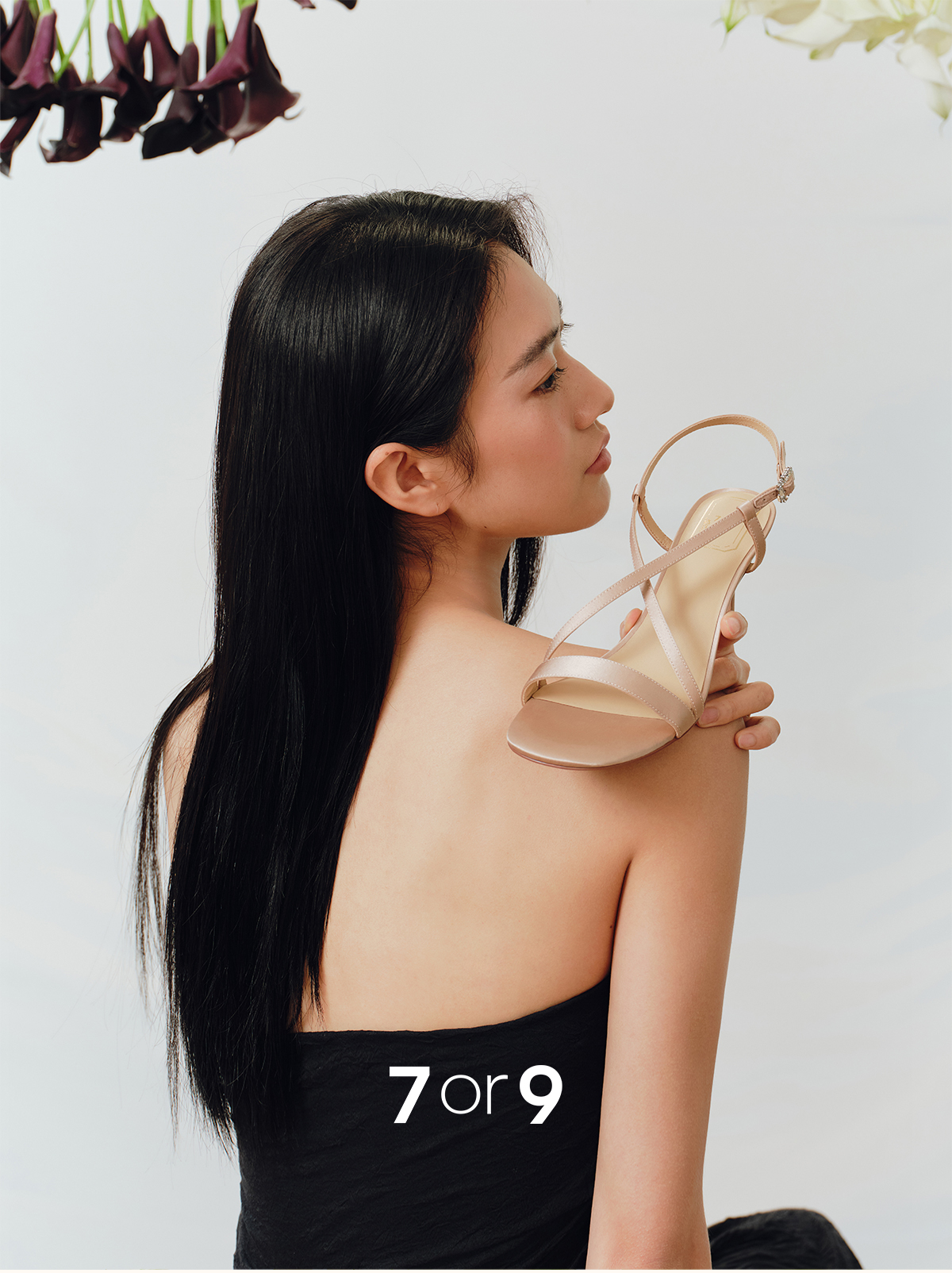 7or9露趾一字带交叉凉鞋高跟鞋黑丝绒/霞多丽