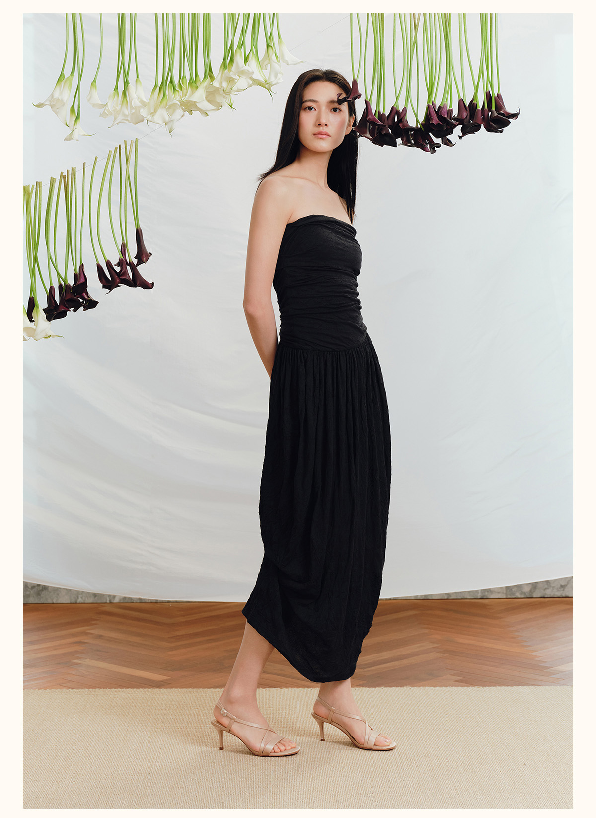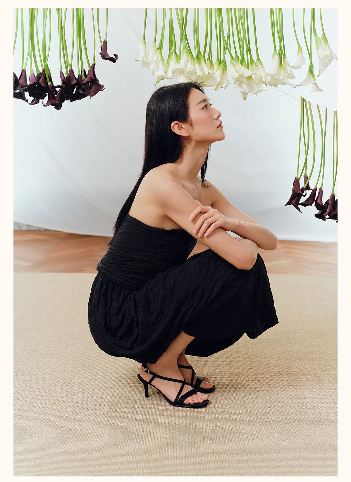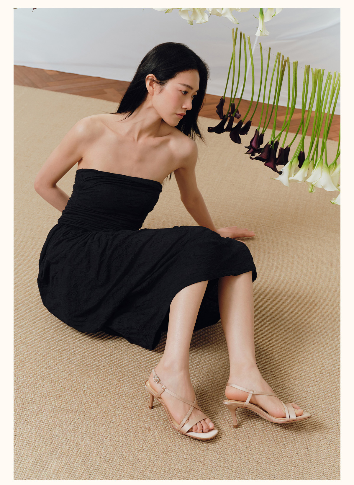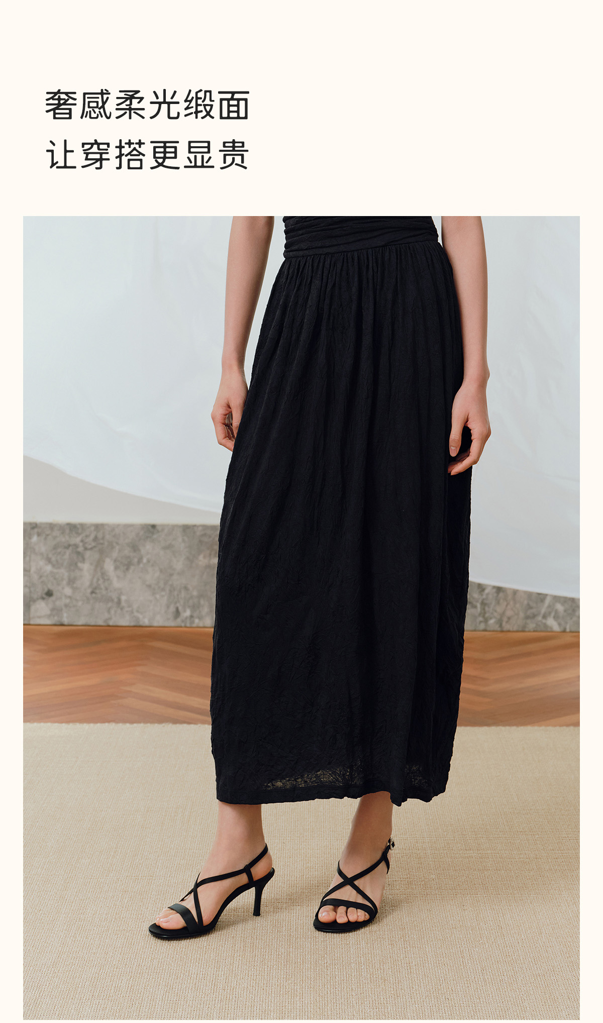 7or9露趾一字带交叉凉鞋高跟鞋黑丝绒/霞多丽