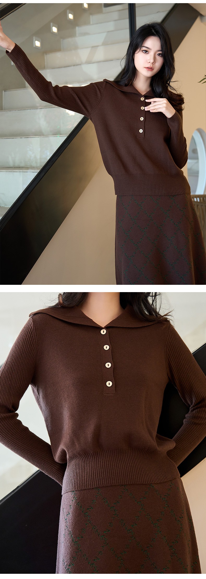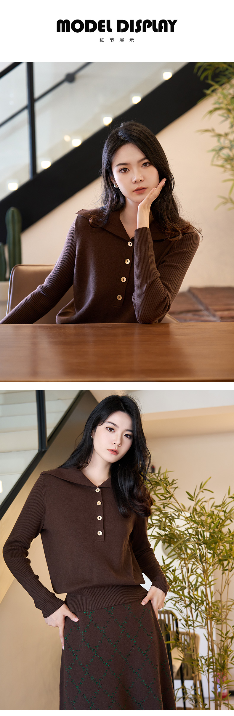 【商场同款】阿菁娜翻领纽扣时髦长袖针织衫A29D301051