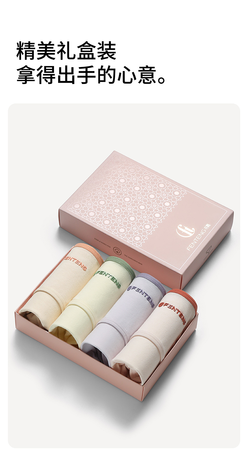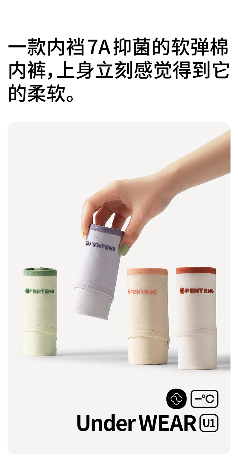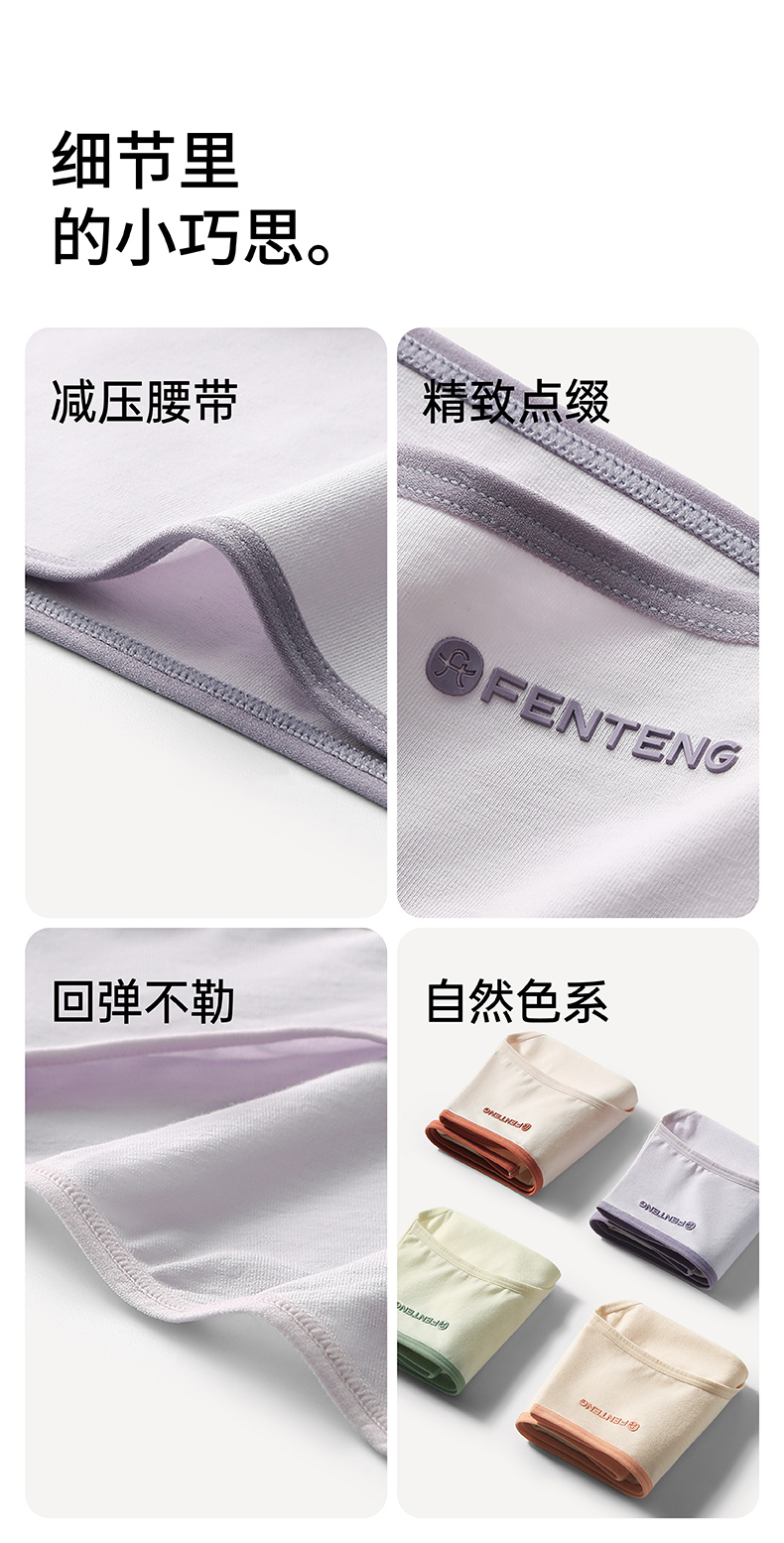 芬腾女士内裤夏季薄款纯棉透气短裤头中腰提臀全棉抗菌内裆三角裤
