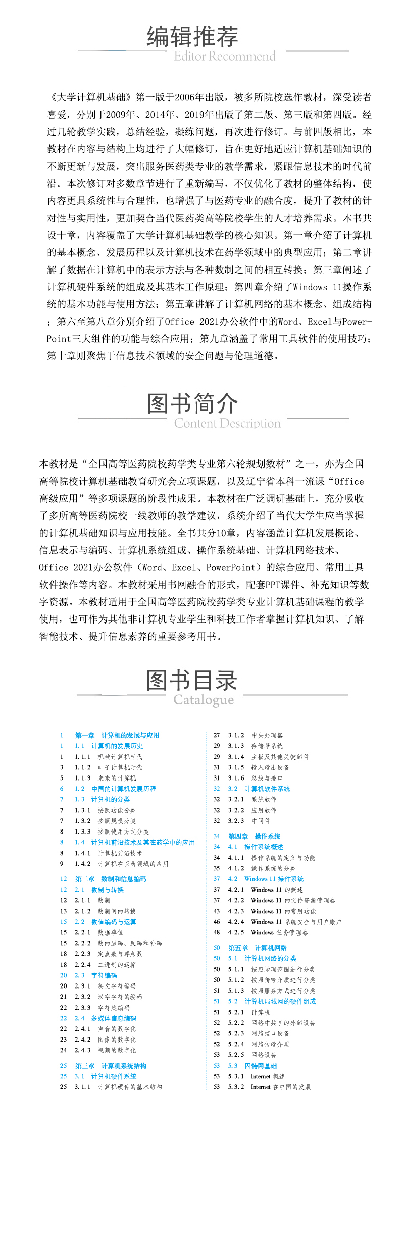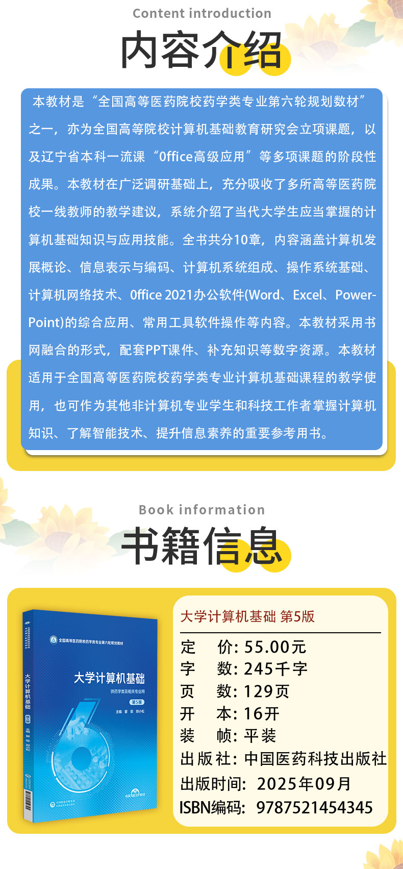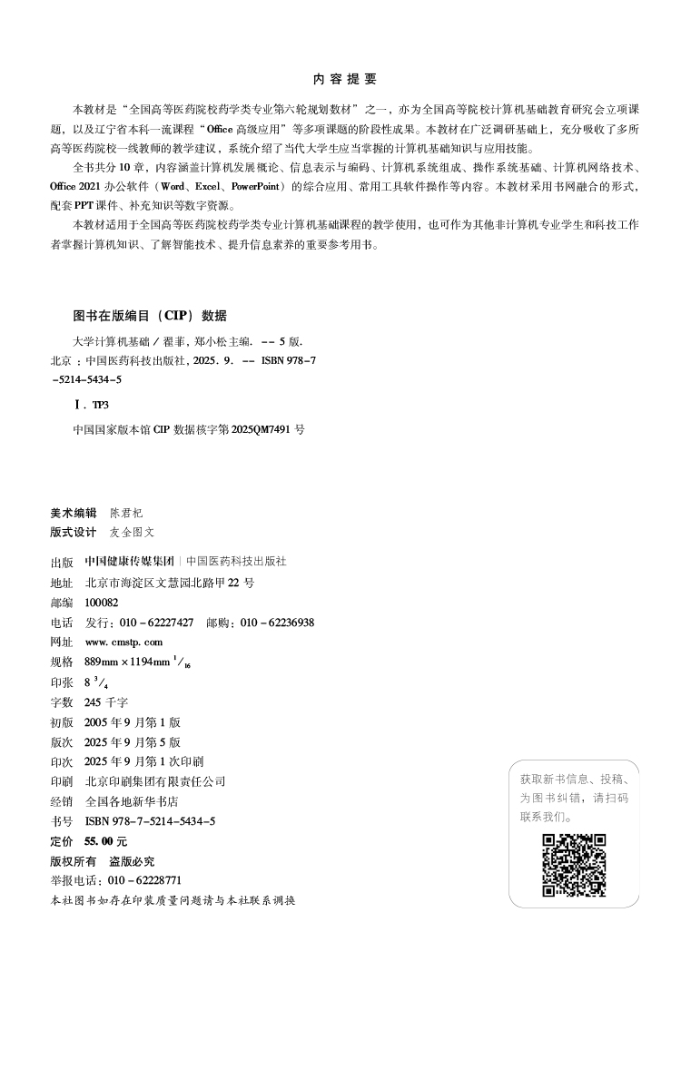 大学计算机基础 第5五版 全国高等医药院校药学类专业第六轮规划教材 翟菲 郑小松 主编 9787521454345 中国医药科技出版社