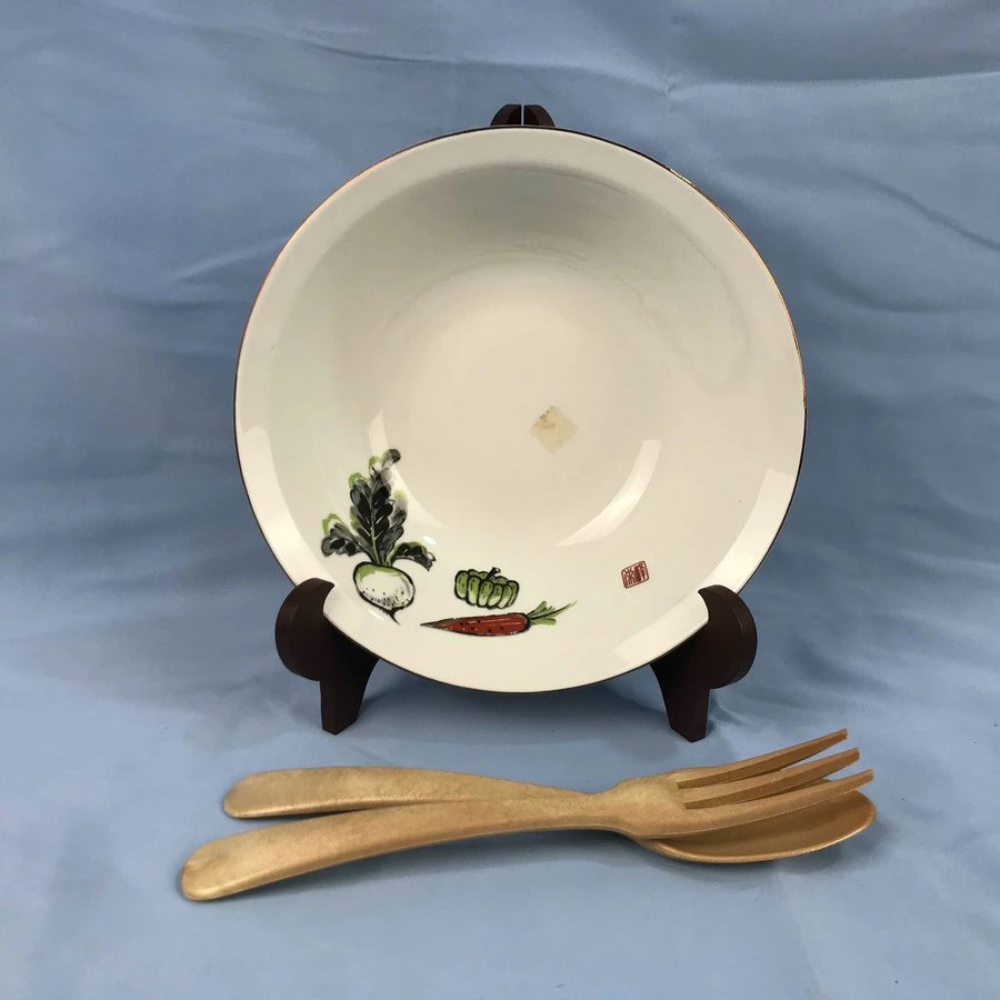 尺寸:口径23cm,高7.5cm,木质餐具长25cm