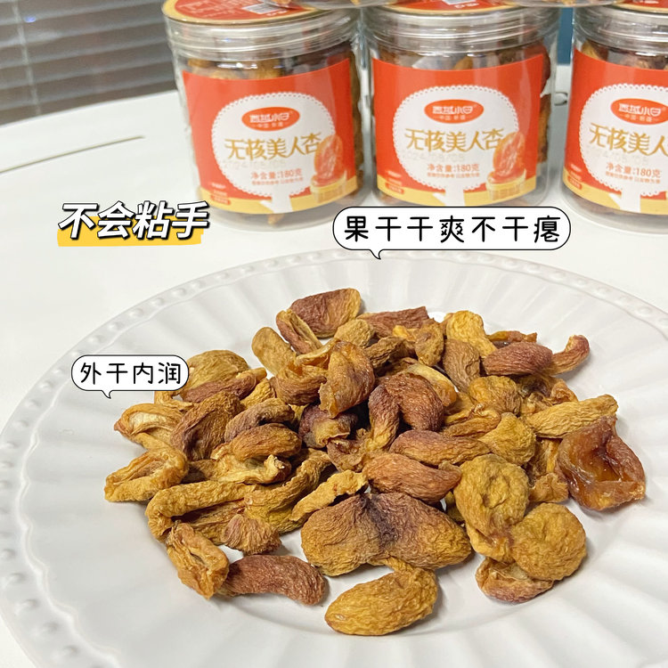 爱吃果干的姐妹看过来~ 这款无核美人杏保留了果肉本身的酸甜~一口下去就只有杏仁果肉,真材实料!不用吐核简直懒人福音!