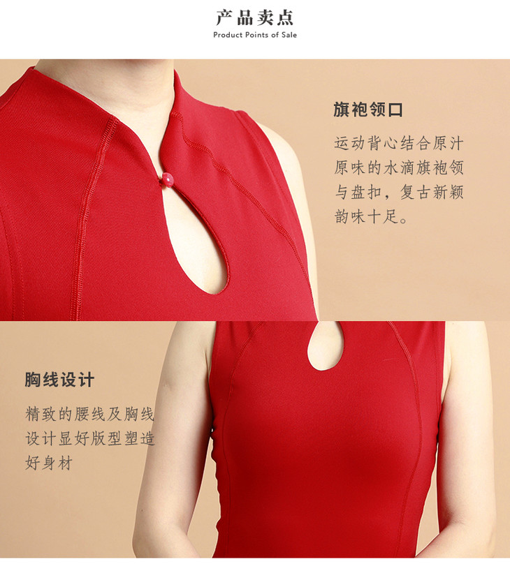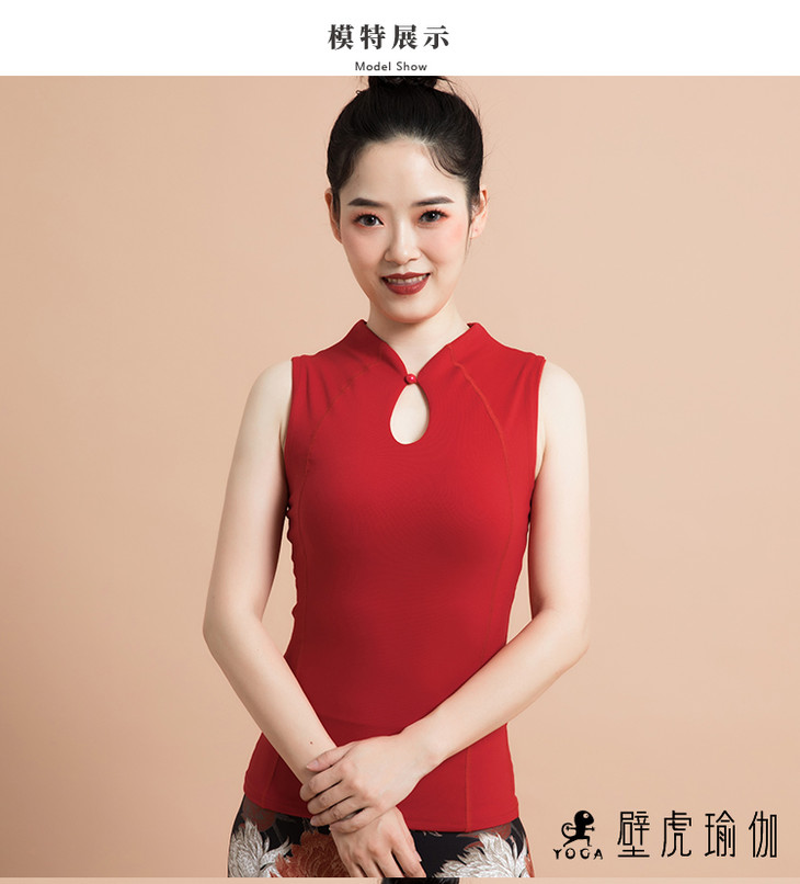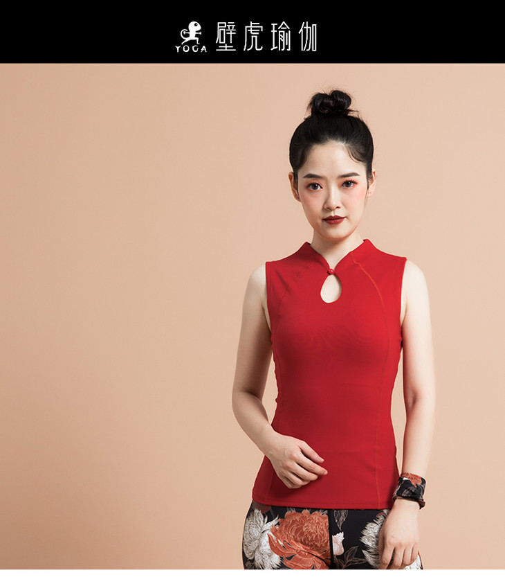 【现货秒发】2020壁虎新款《若旅-大红》立领旗袍式领口瑜伽背心(有胸垫)