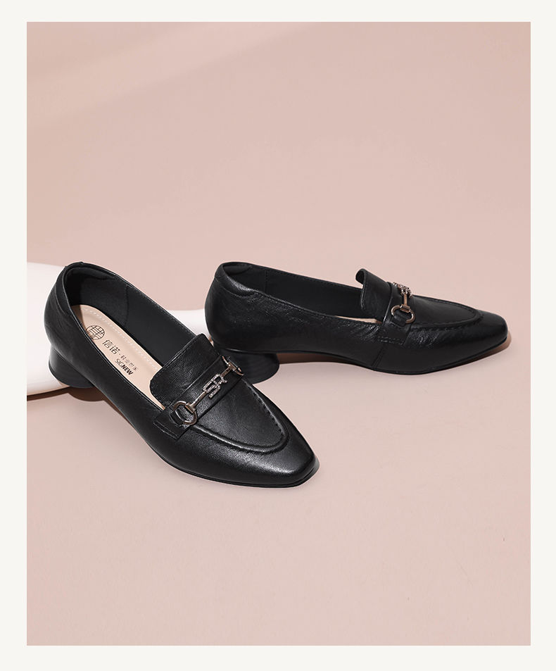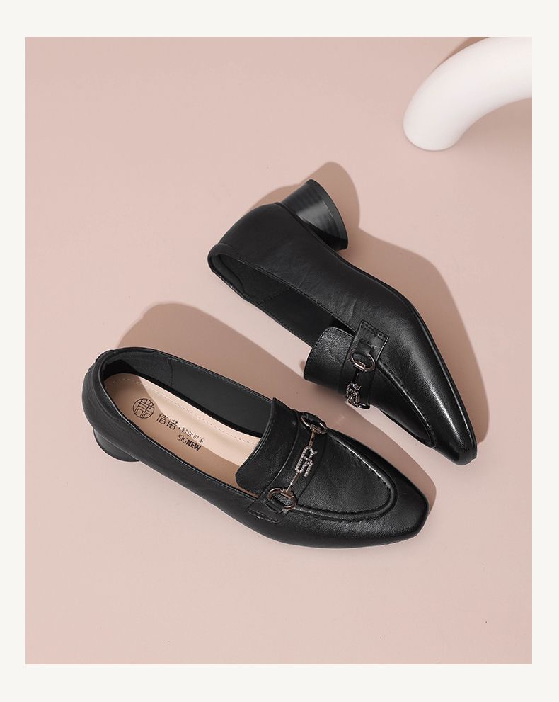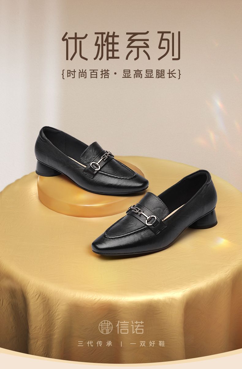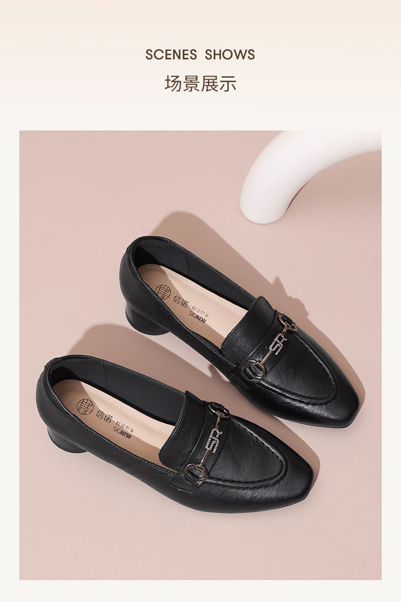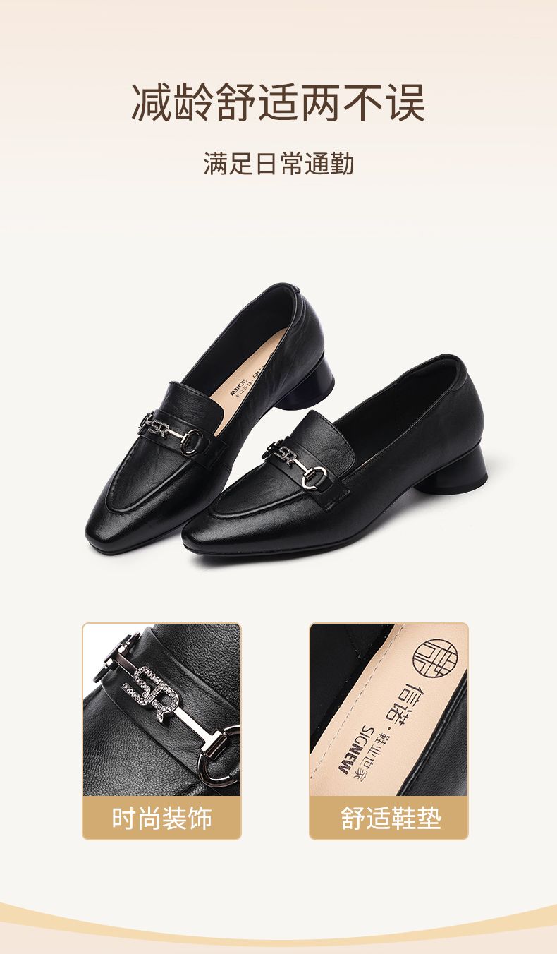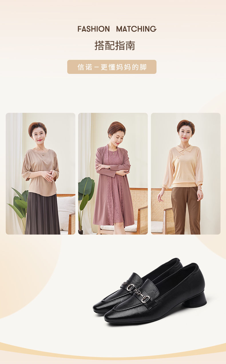 信诺舒适羊皮乐福鞋2024秋季新款休闲一脚蹬单鞋妈妈鞋女士小皮鞋X24Q032-75