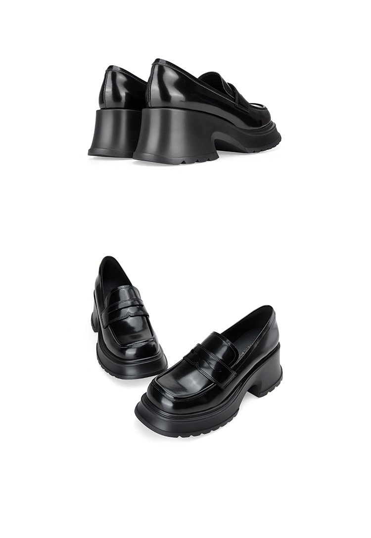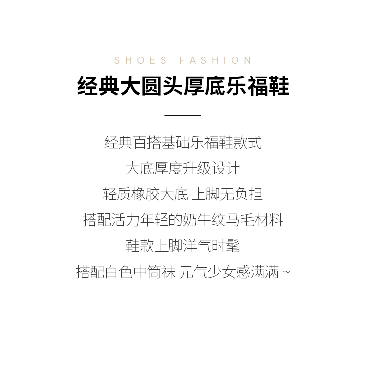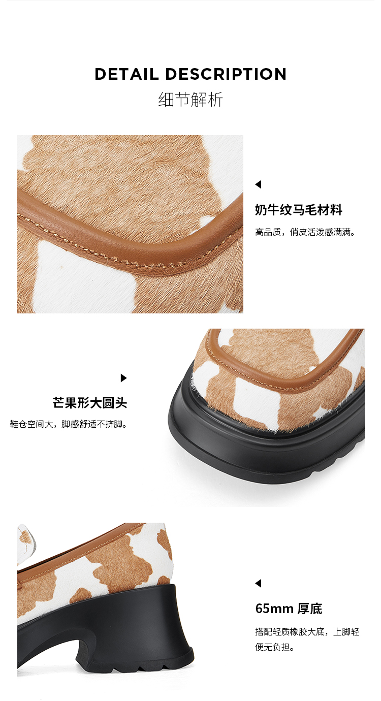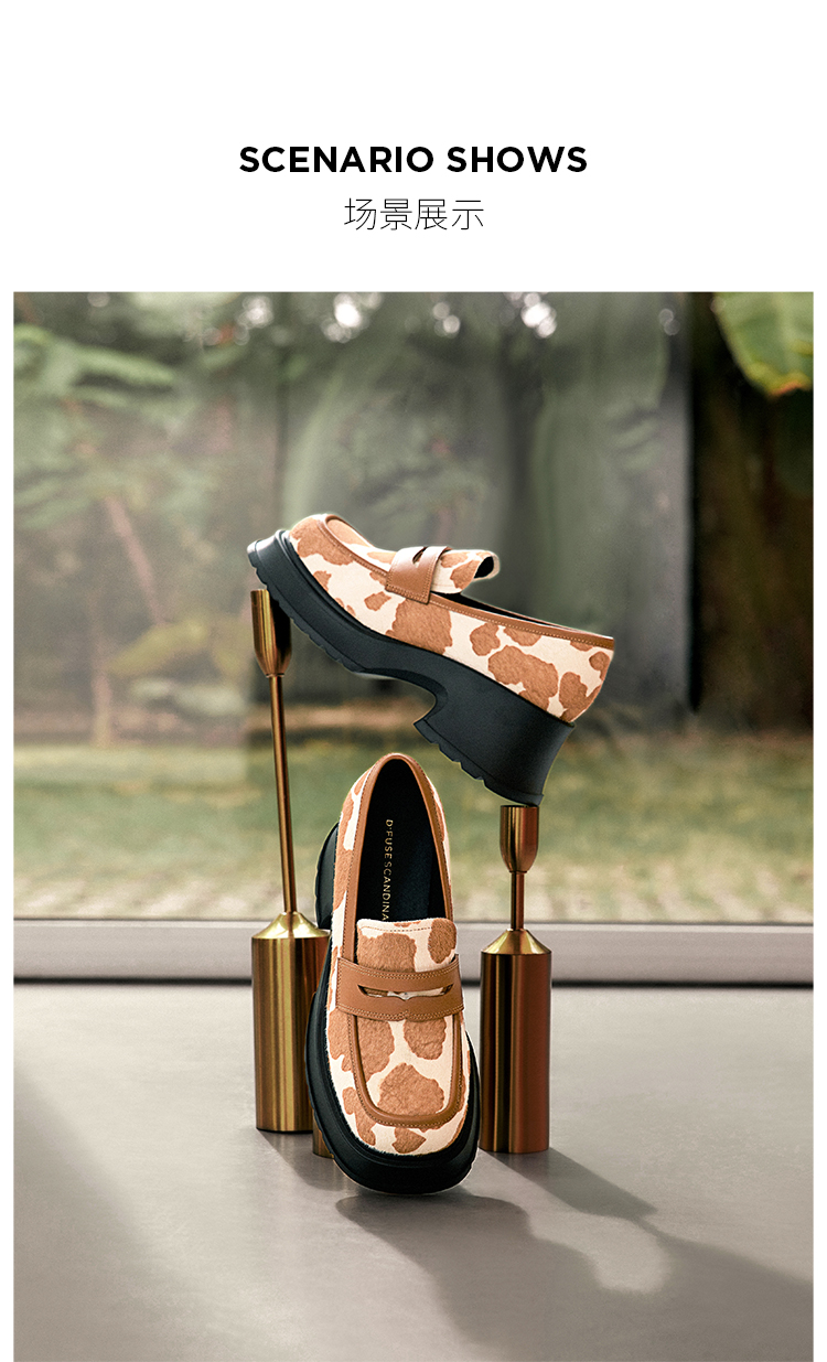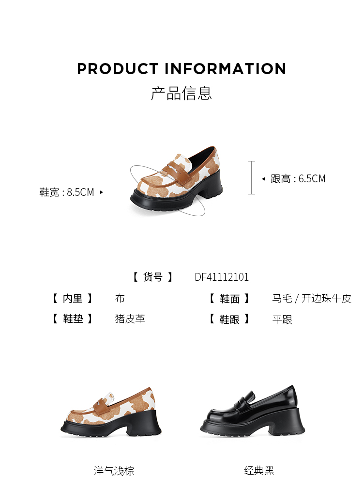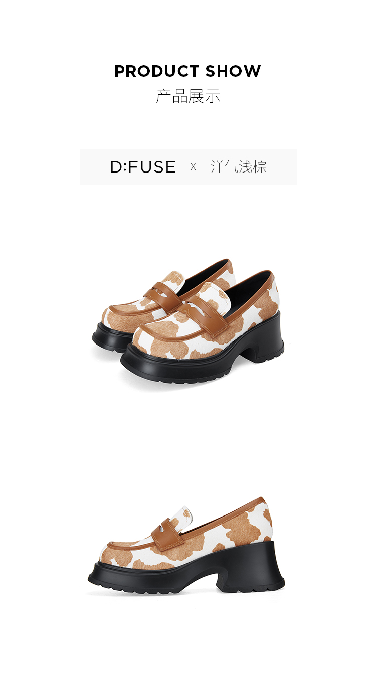 Dfuse迪芙斯2024春季新款大圆头厚底奶牛纹JK乐福鞋女DF41112101