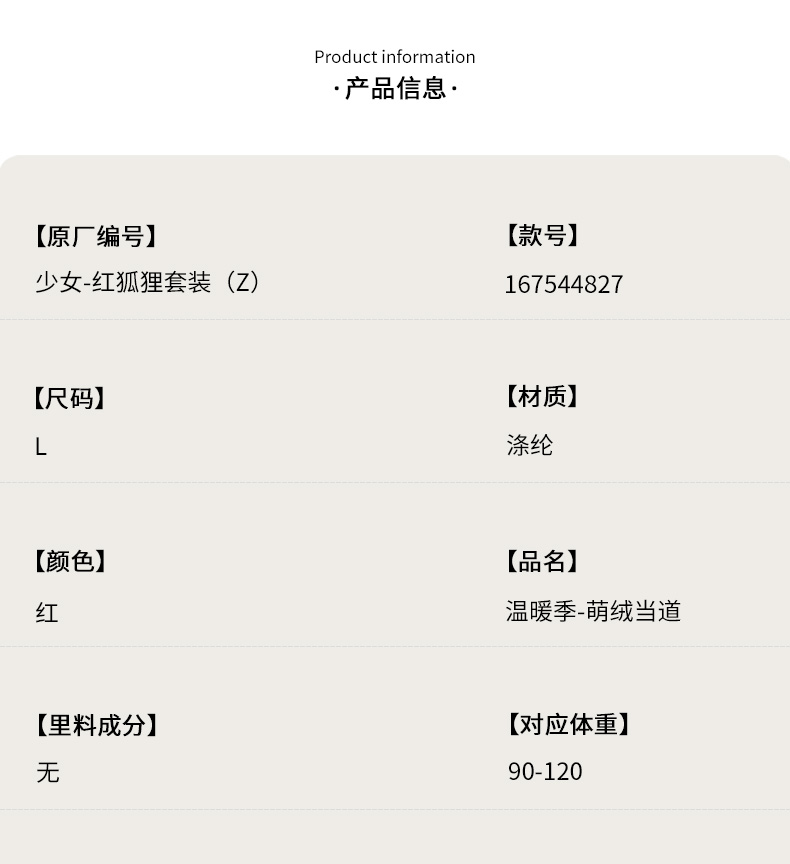 温暖季少女红狐狸毛绒睡衣套装家居服纪念日百货门店同款167544827