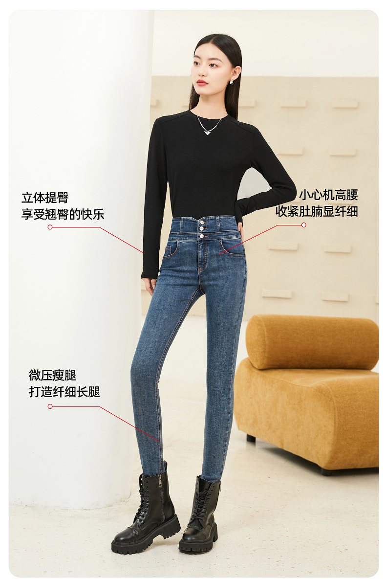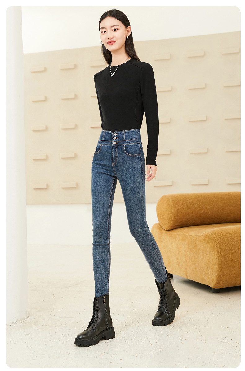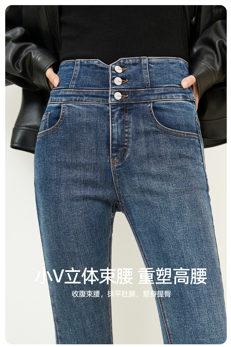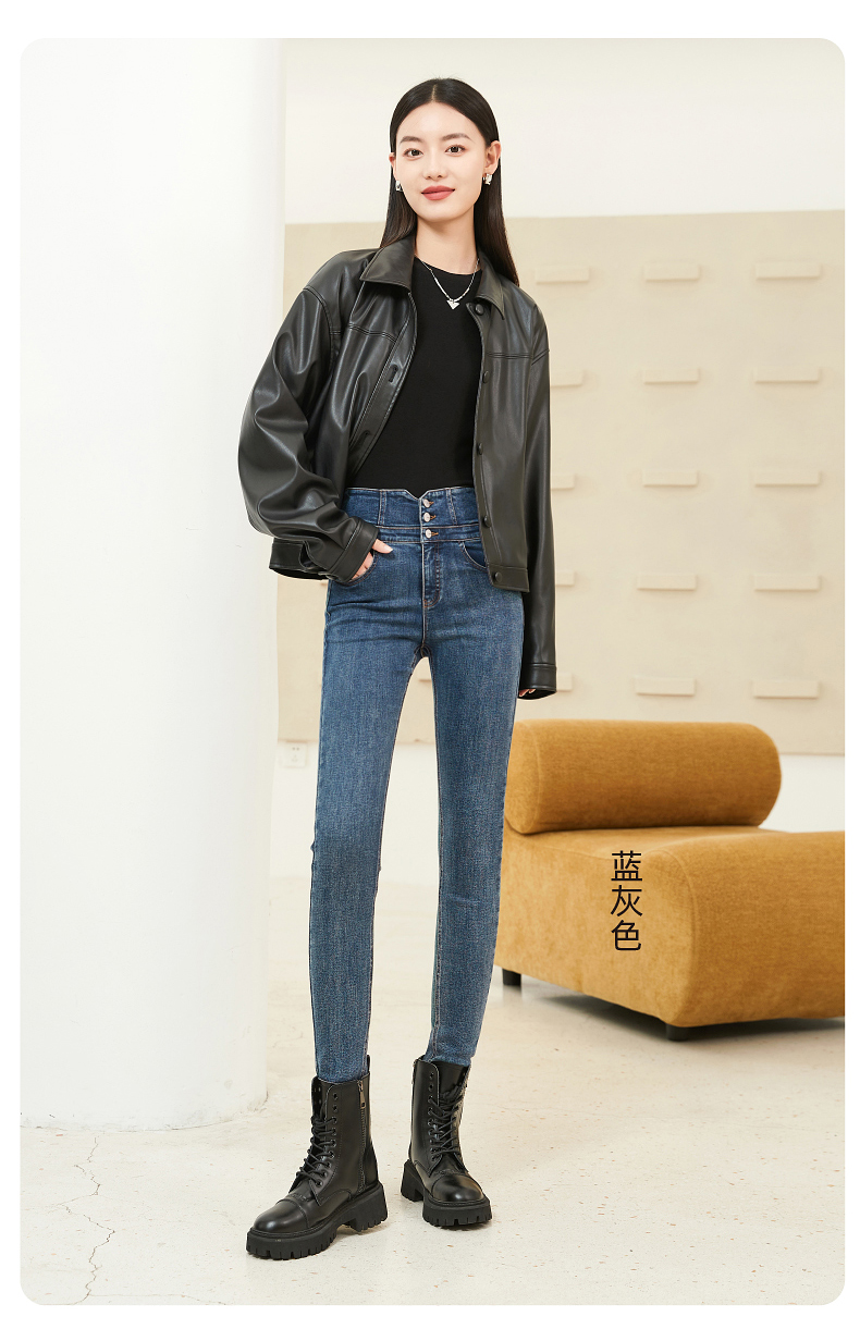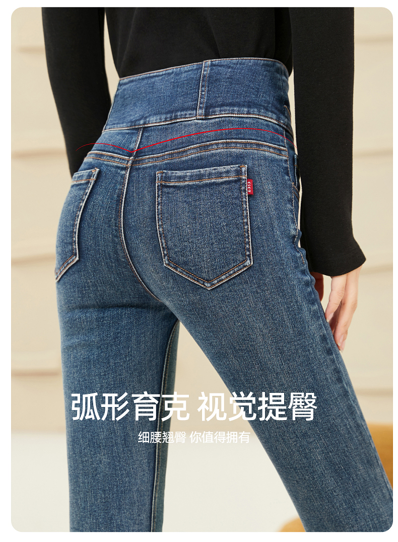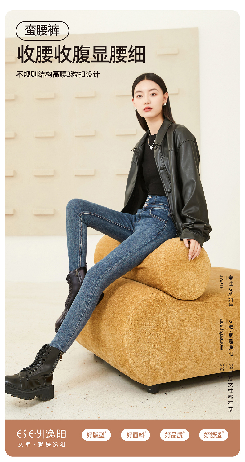 逸阳铅笔牛仔裤女2023年秋季新款高腰三粒扣修身显瘦小脚裤子0304