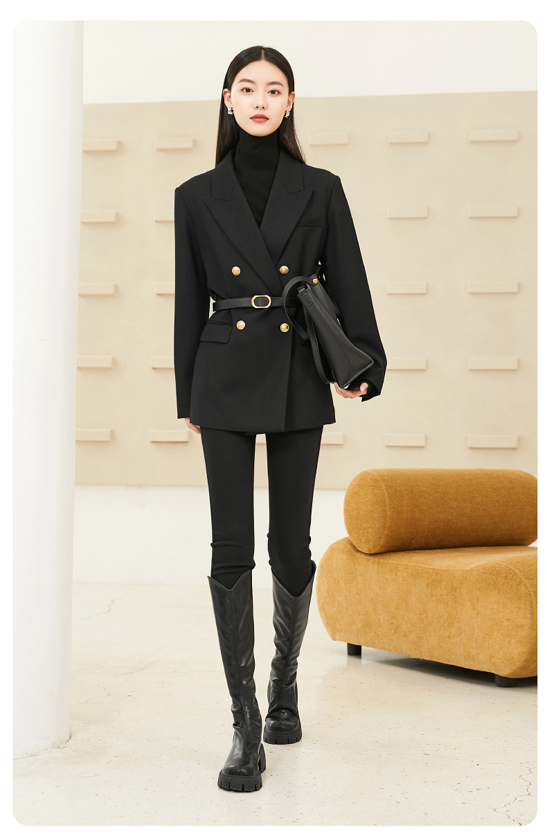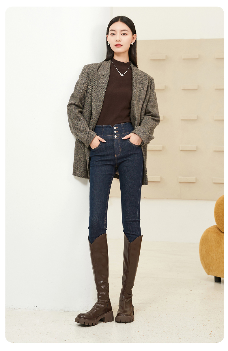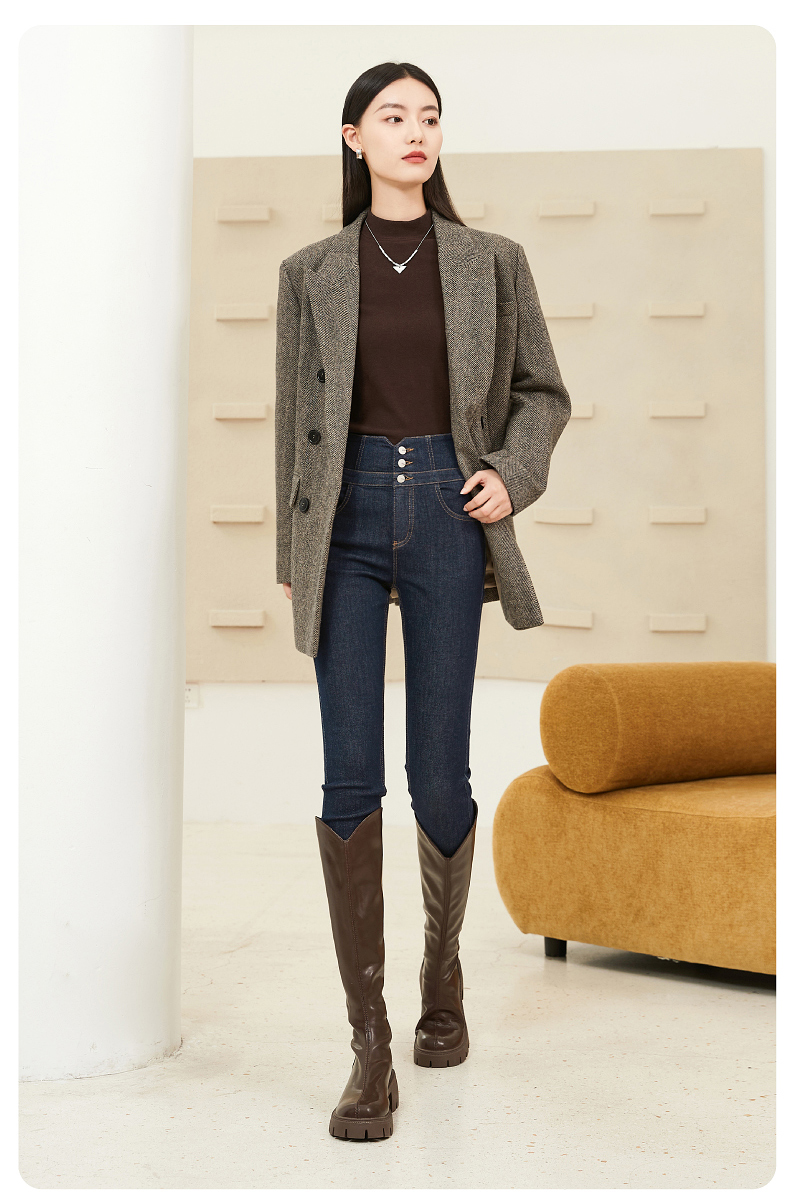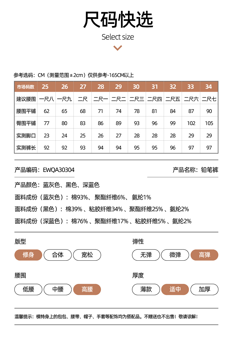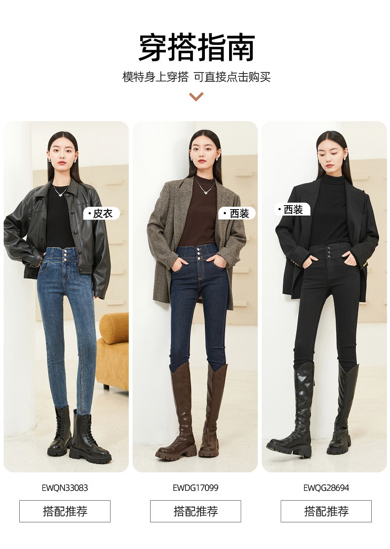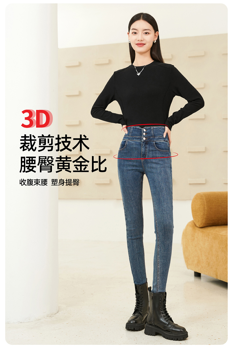 逸阳铅笔牛仔裤女2023年秋季新款高腰三粒扣修身显瘦小脚裤子0304