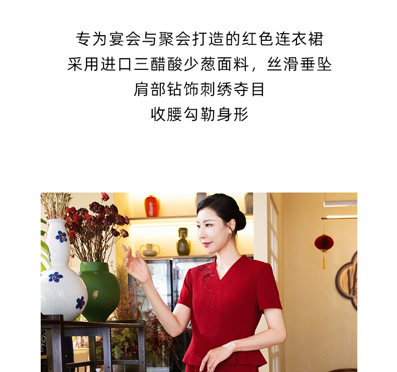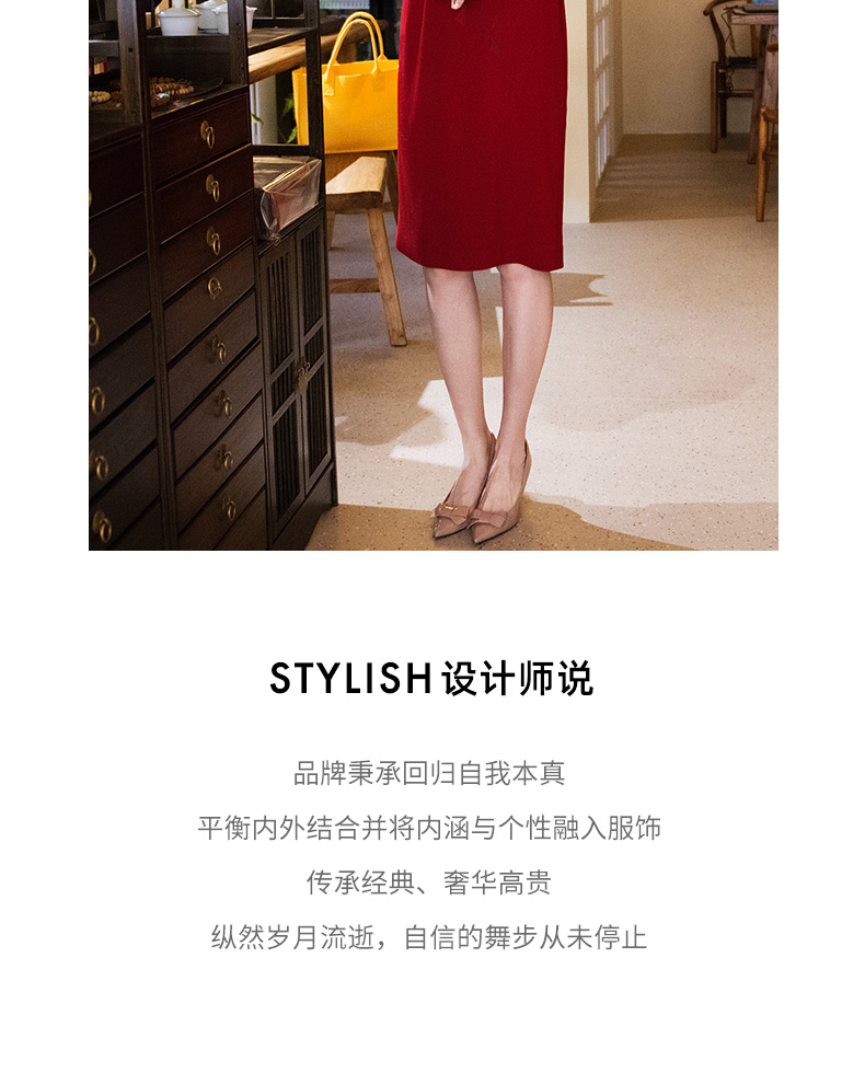成熟、稳重、高贵典雅、大方得体 融合东方文化的含蓄和法国的浪漫 将创意的艺术性与消费需求相结合 为自信女性塑造高品质场合服装