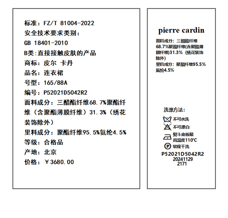 皮尔卡丹女装春季新款简约通勤气质修身连衣裙P2130E2123B0