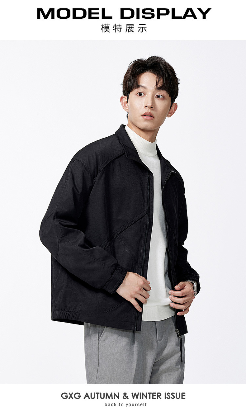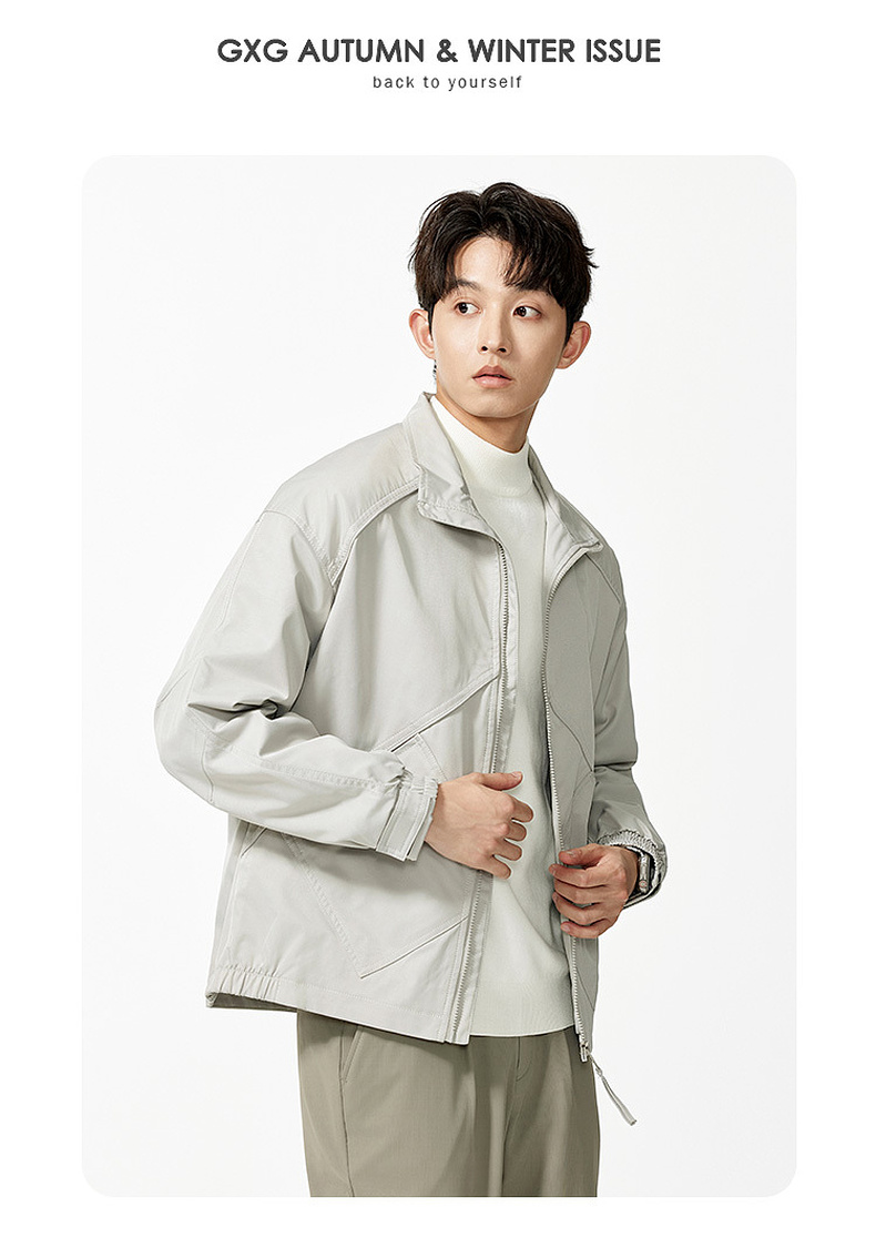GXG男装秋季时尚拼接微落肩立领简约休闲短款设计感男式夹克K&C