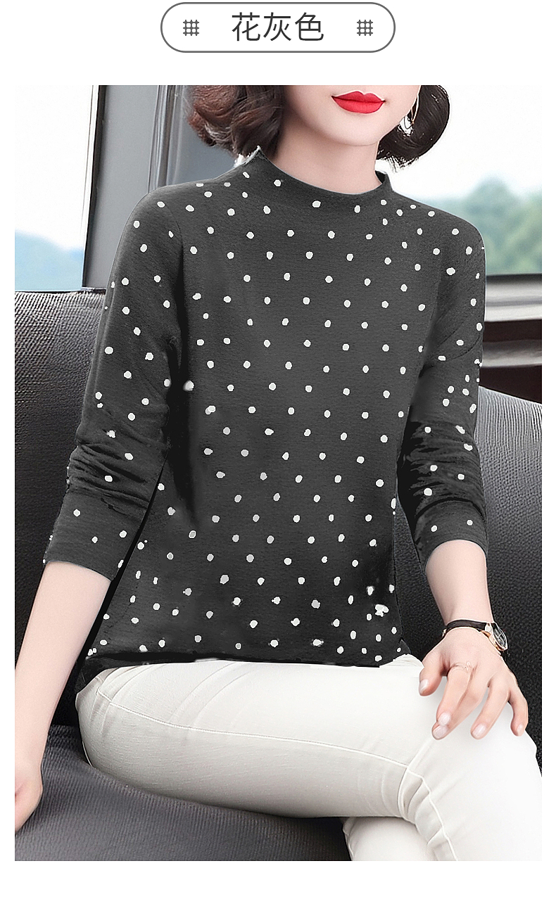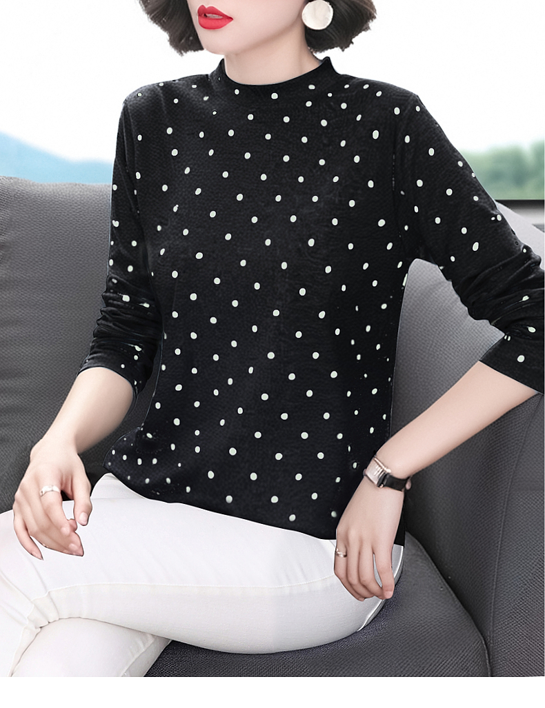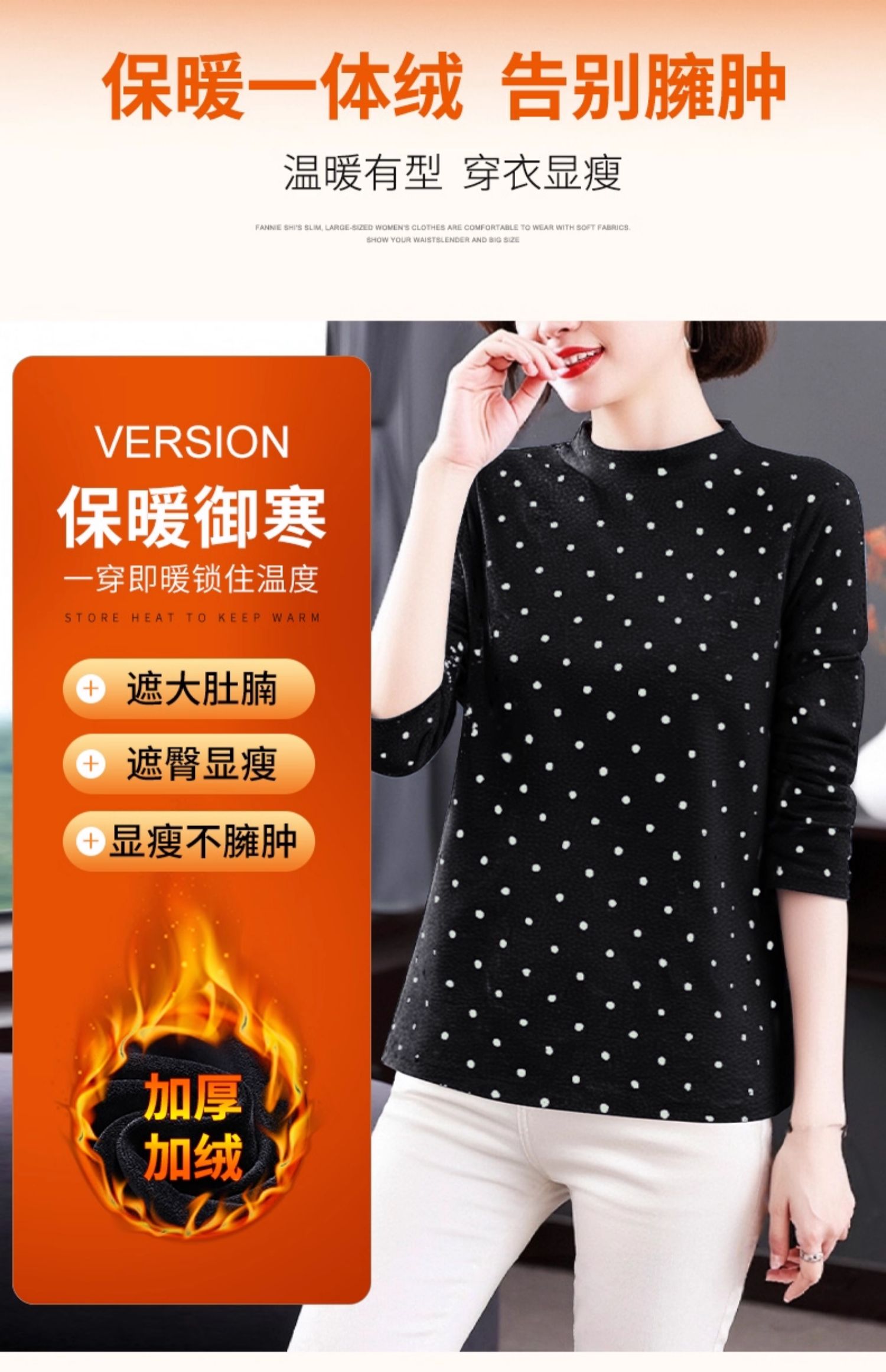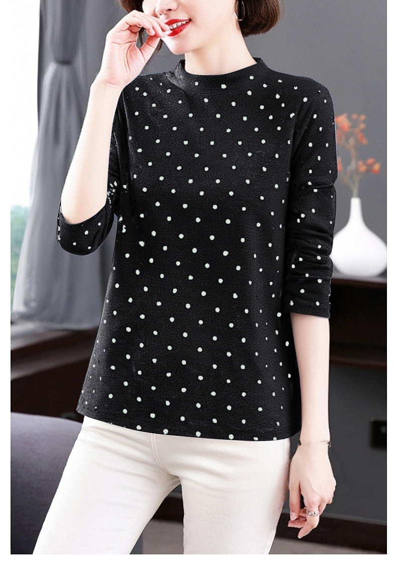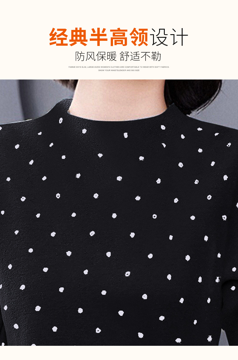 黑色半高领打底衫女秋冬季2026新款大码波点上衣妈妈女士长袖t恤