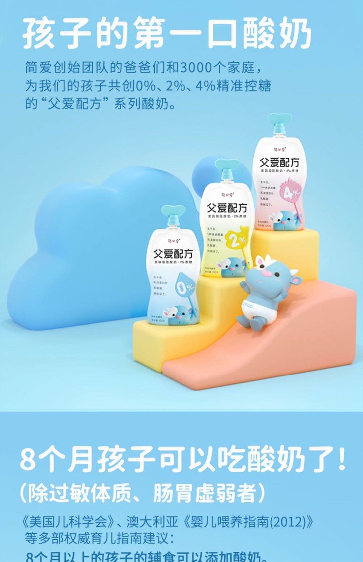 (超值)【每周一、二冷链直供】简爱·父爱配方控糖低温婴幼儿童果蔬吸吸酸奶 100g*12袋【生鲜商品无质量问题不退不换】