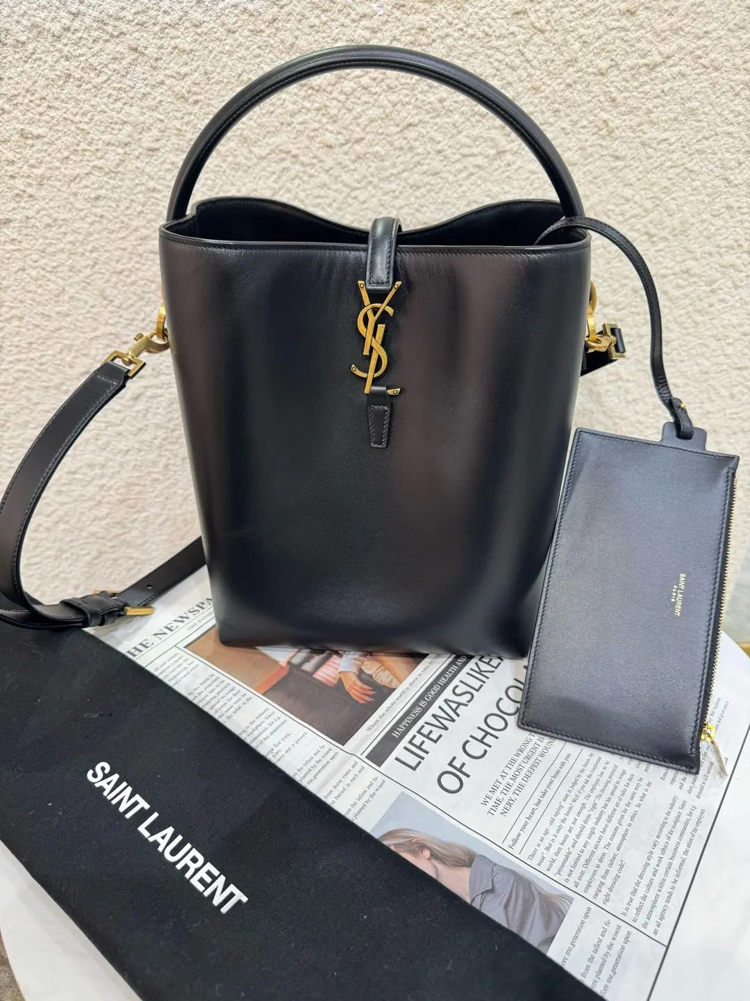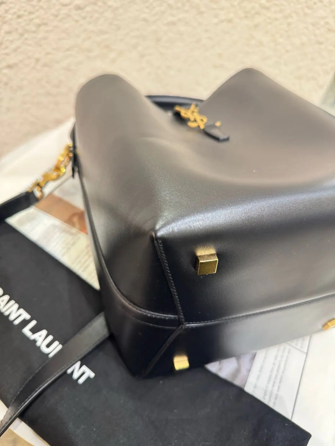 正品二手 YSL LE37 中号 黑金 牛皮 水桶包🪣97新 20*25 配件:肩带 子袋 防尘袋 盒子。收纳超方便