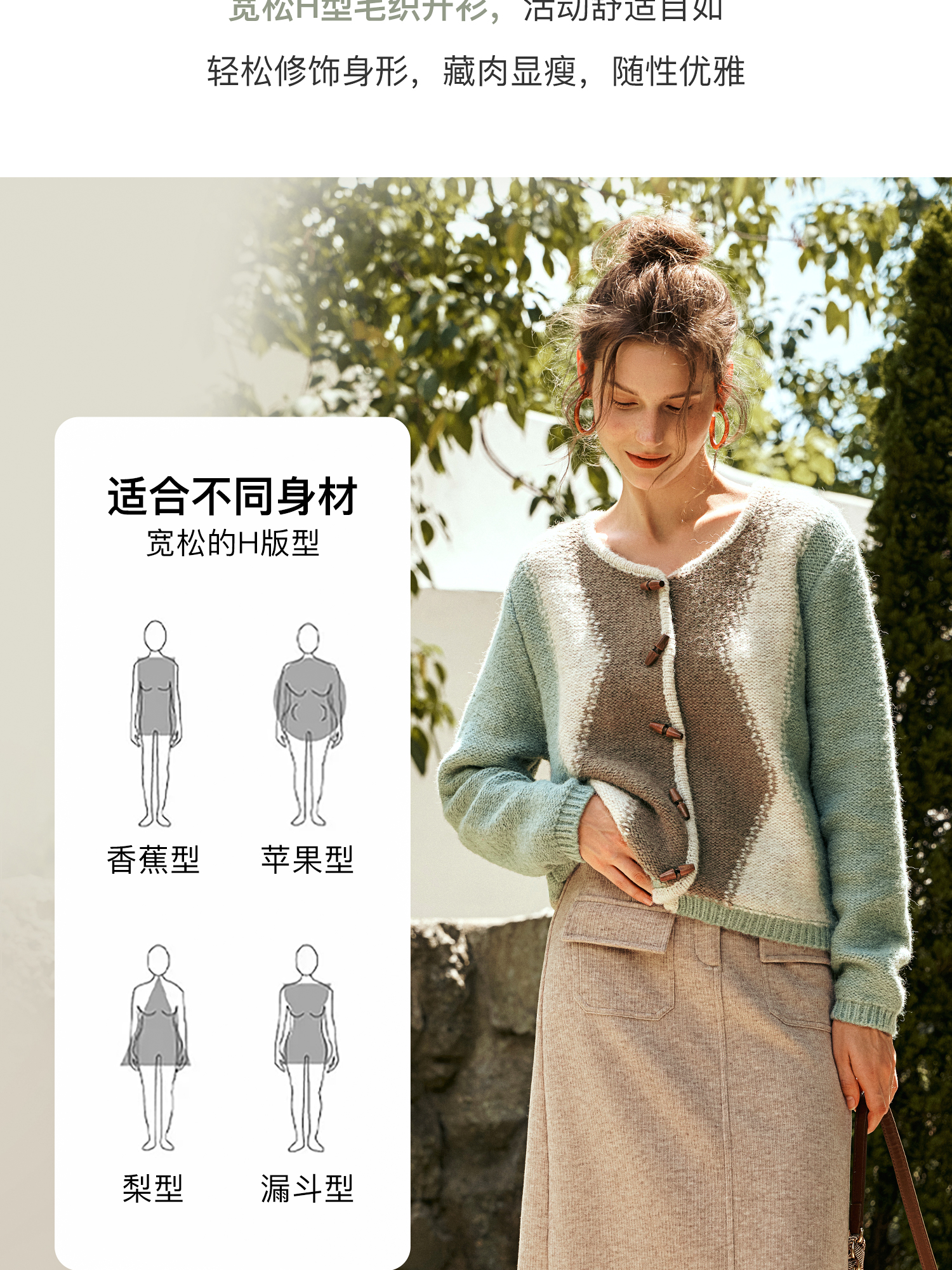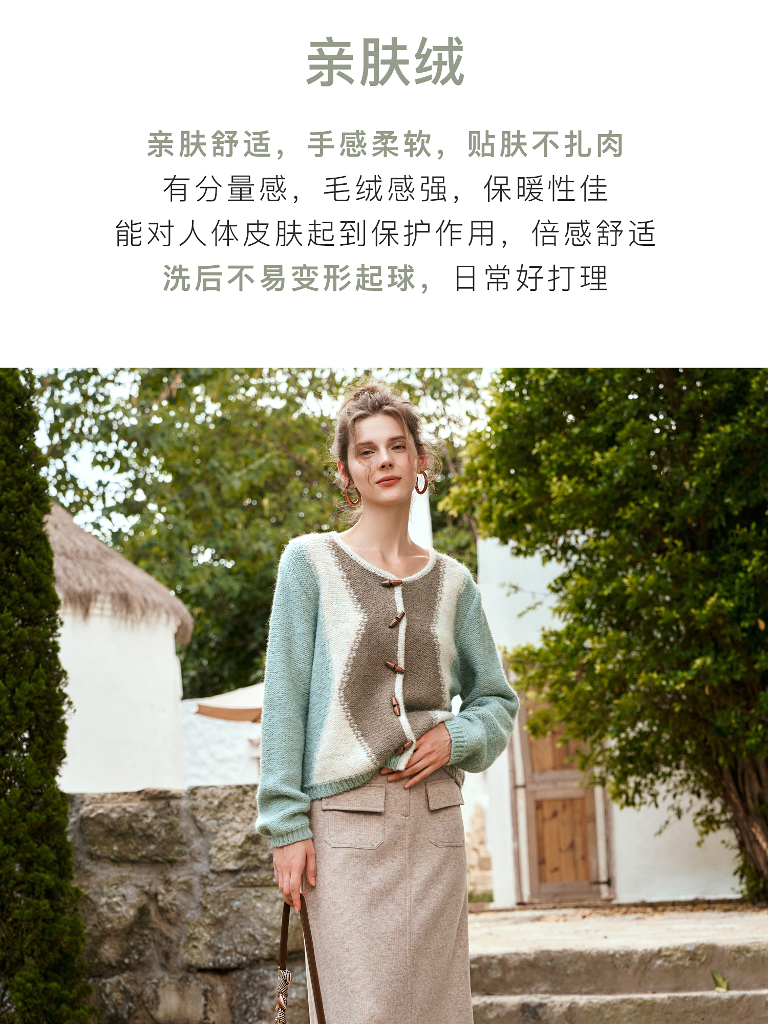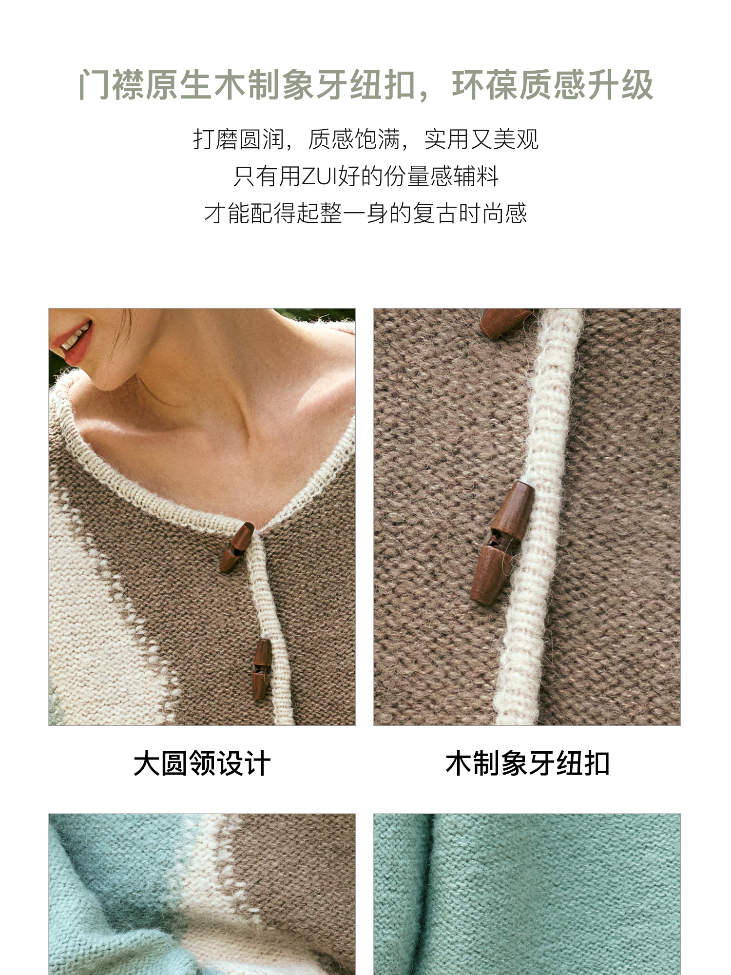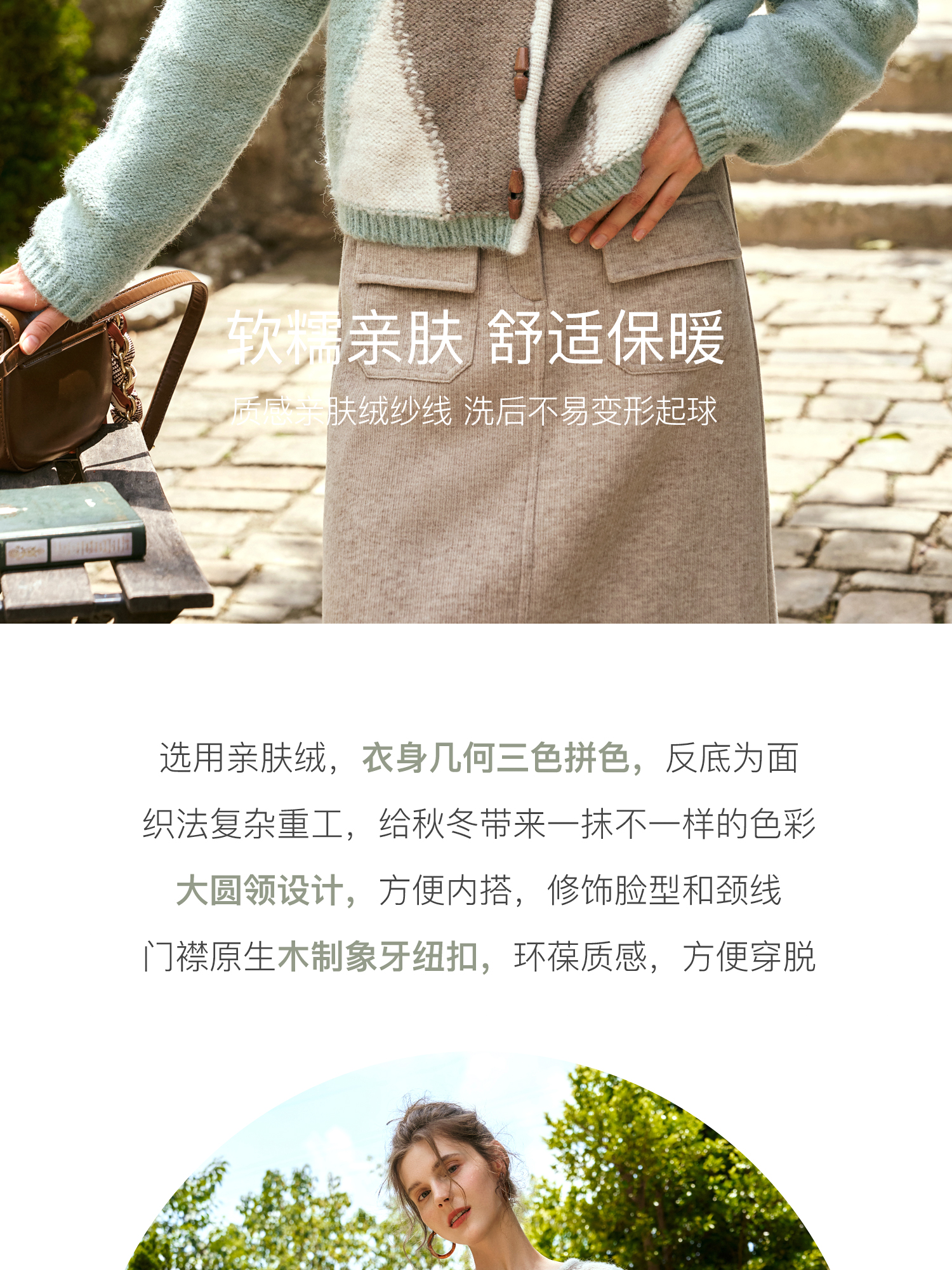 OLrain欧芮儿圆领毛衣外套女秋季2024年新款通勤几何拼色针织开衫