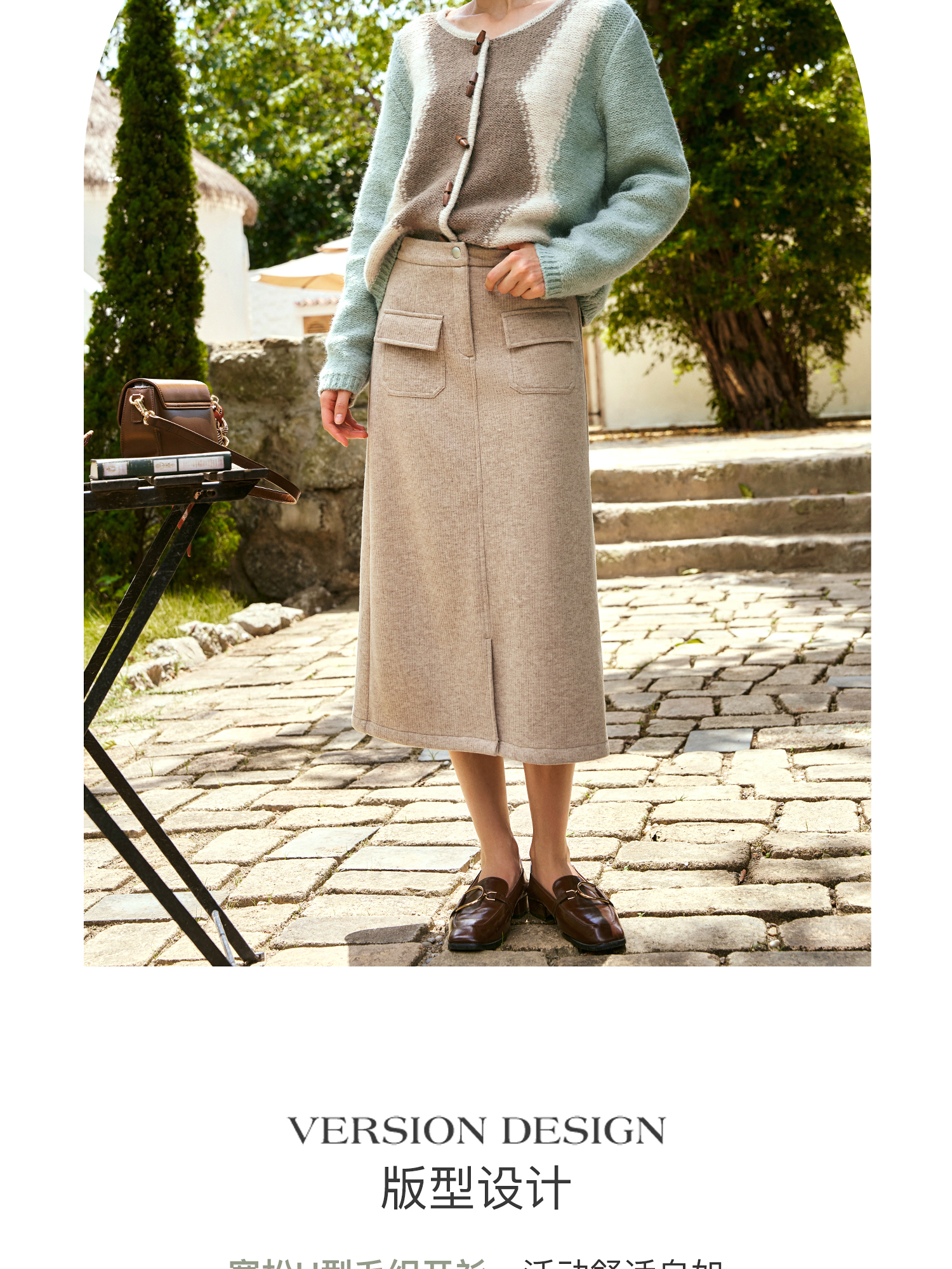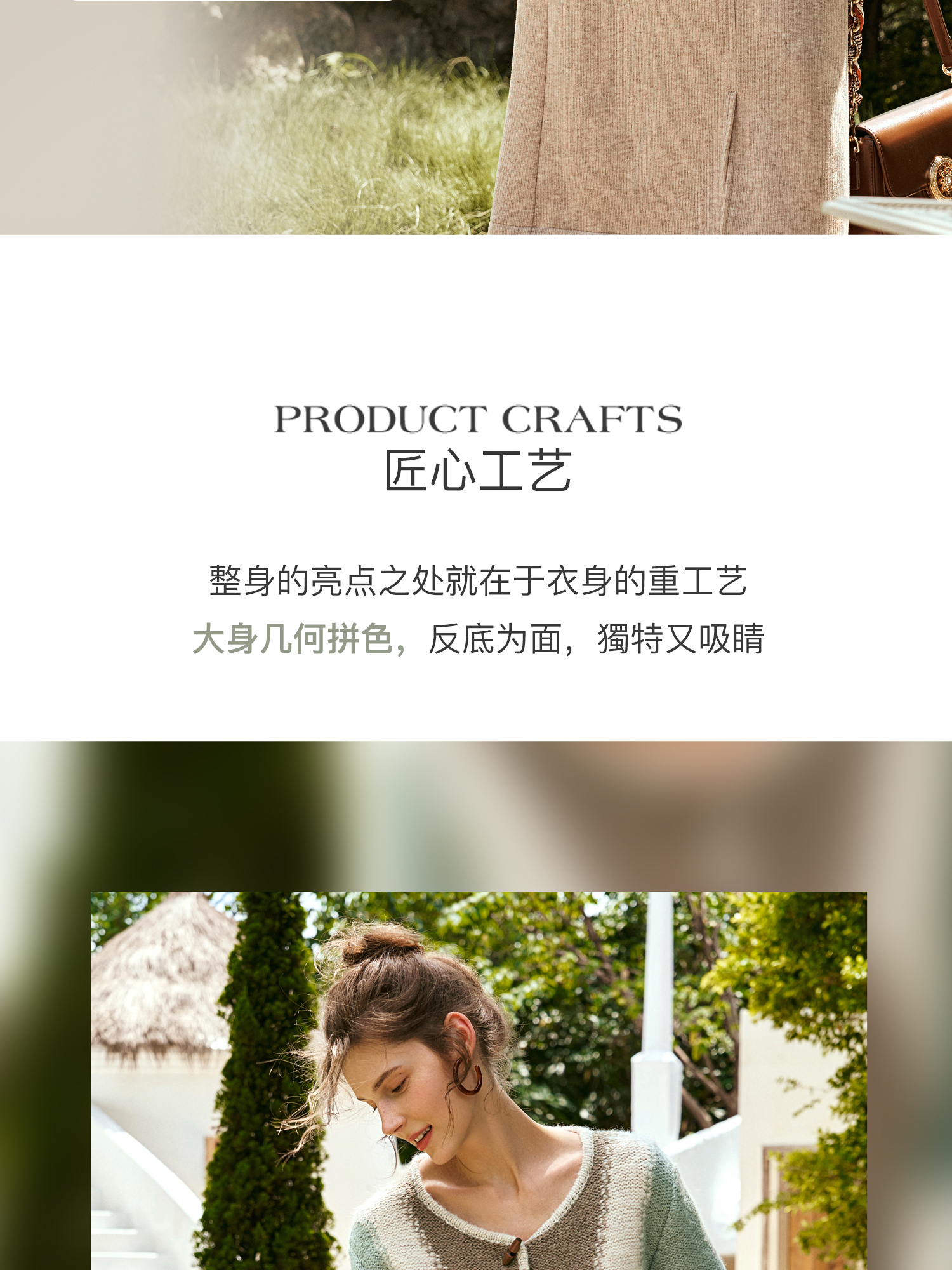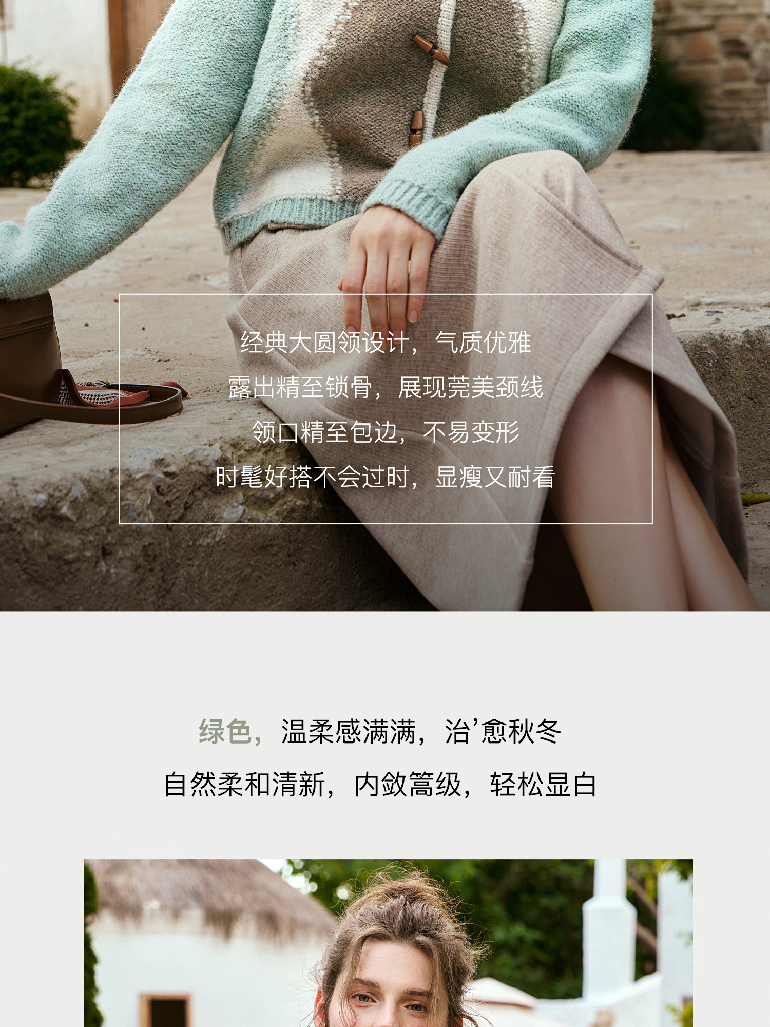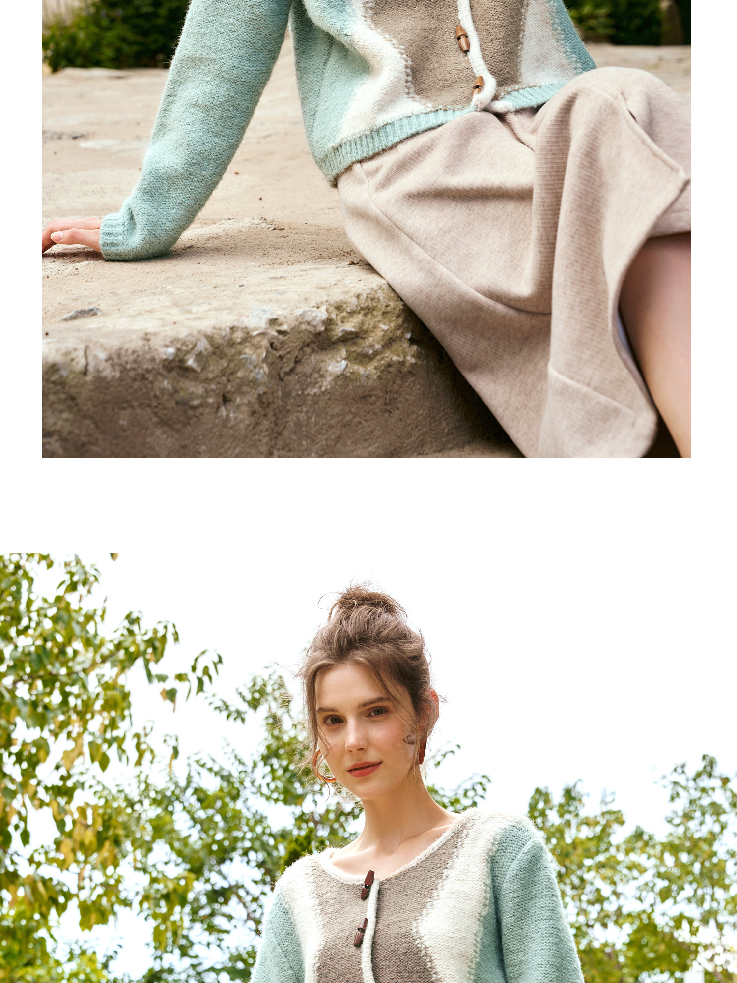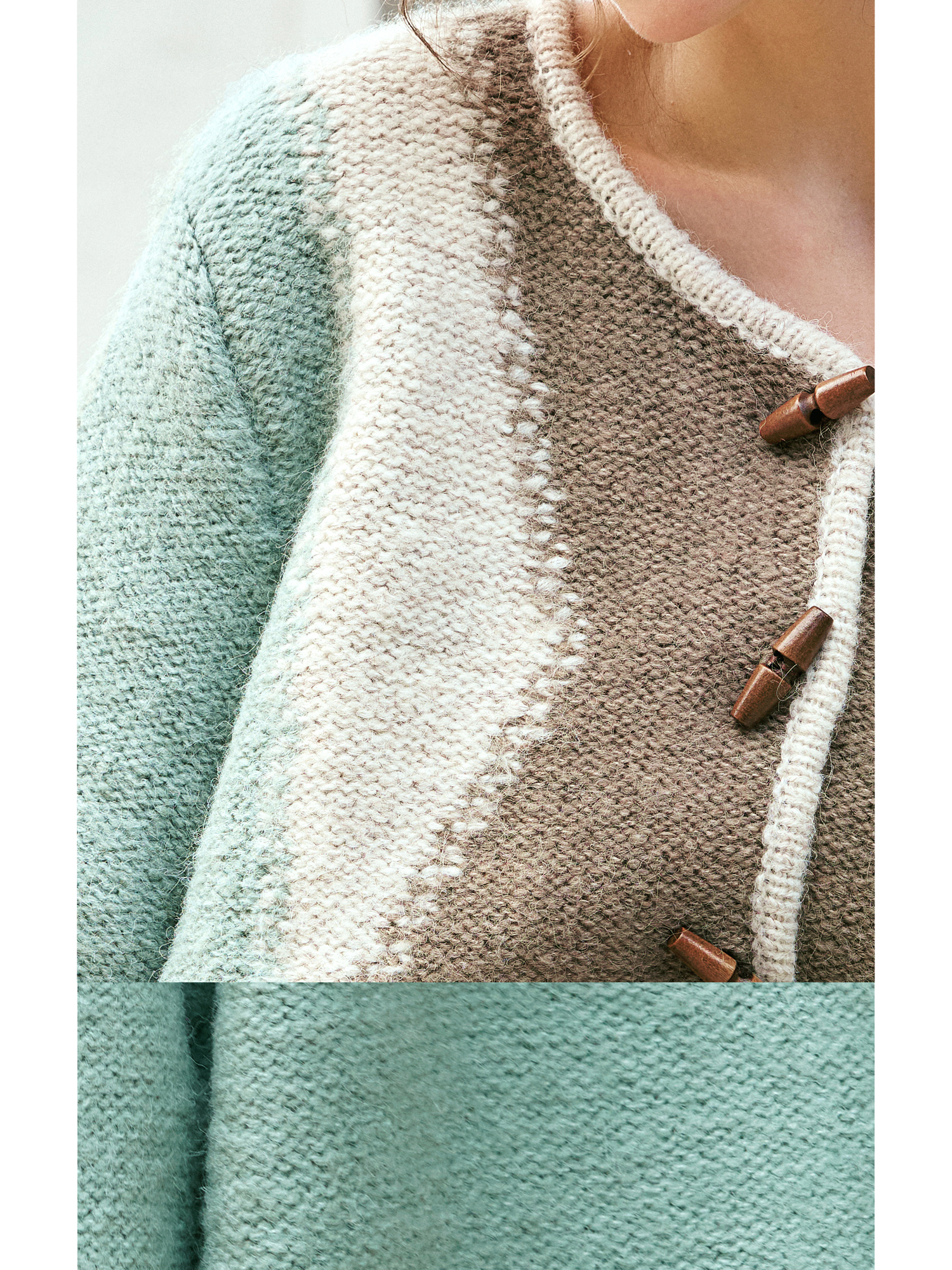 OLrain欧芮儿圆领毛衣外套女秋季2024年新款通勤几何拼色针织开衫