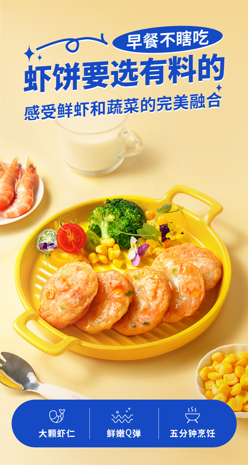 【2件95折 3件9折】果蔬儿童海鲜虾饼*4(160g/盒/4个) 付费超级会员价56元
