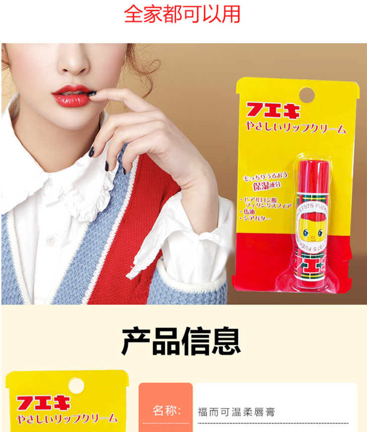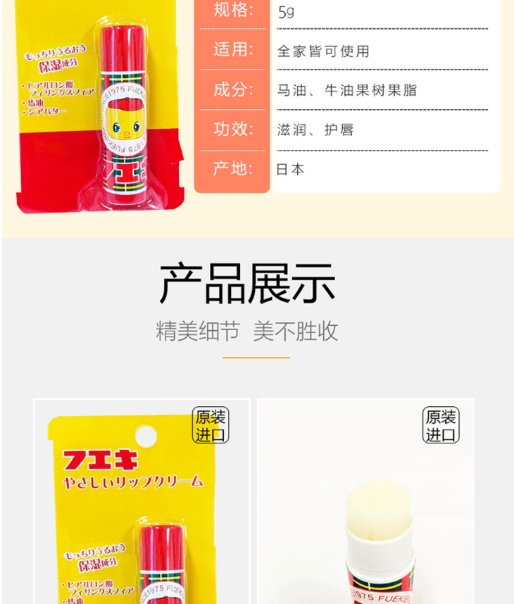 日本fueki福而可小黄鸭儿童唇膏 婴儿男女宝宝保湿滋润防干裂补水