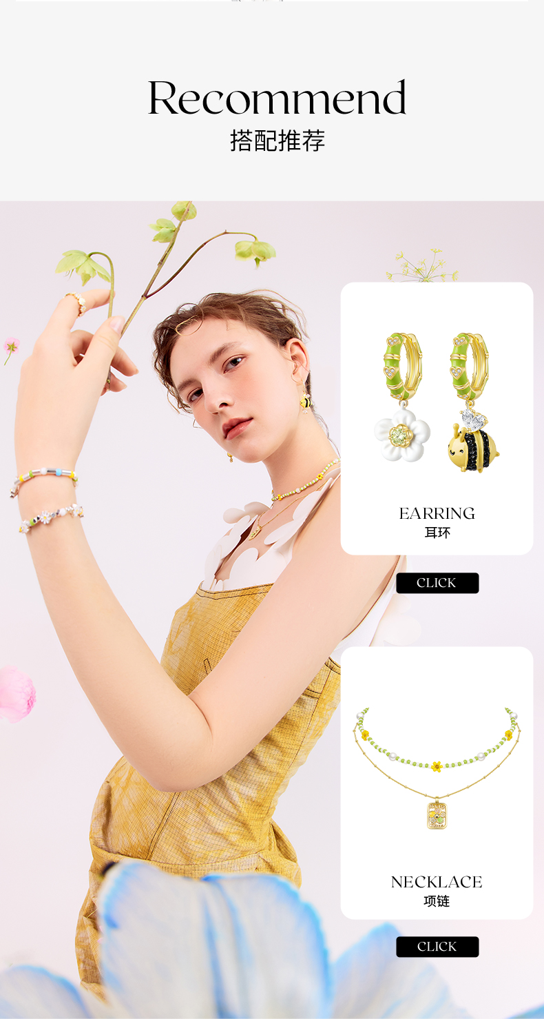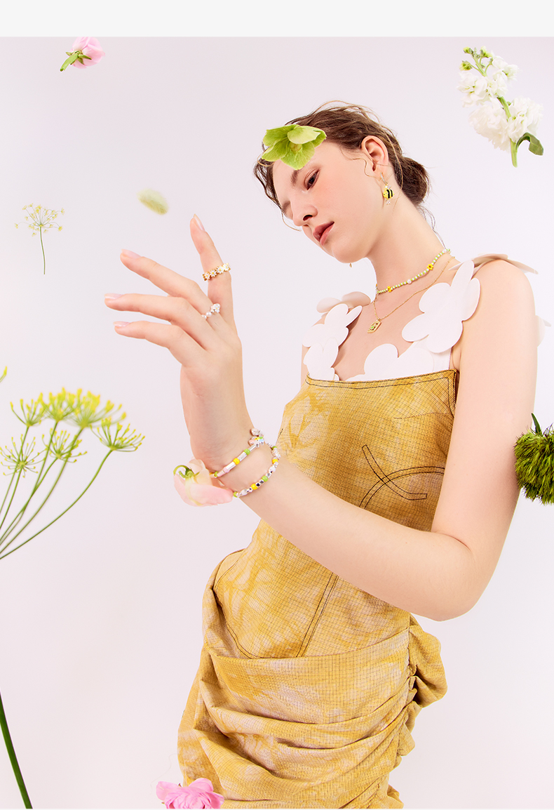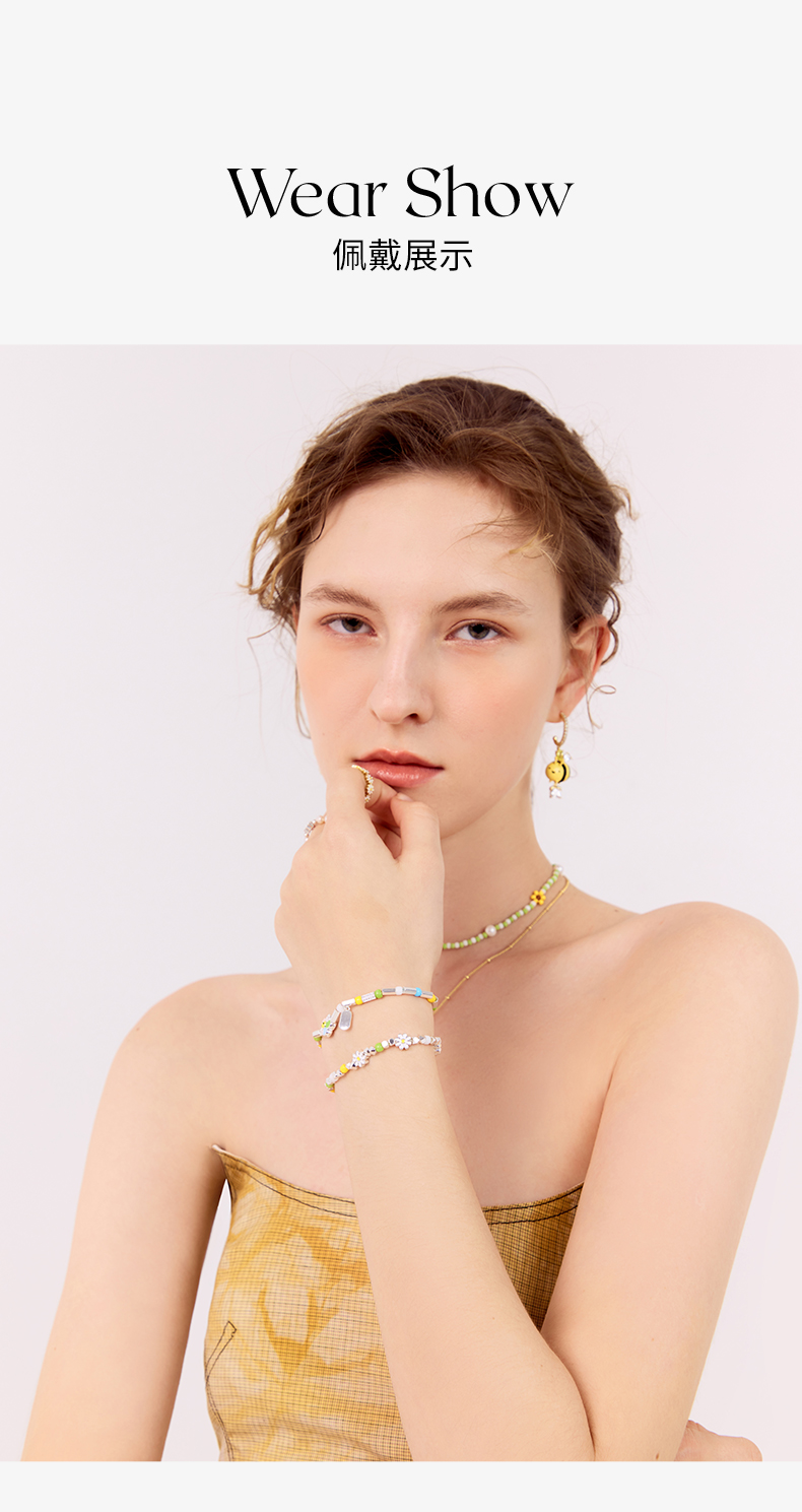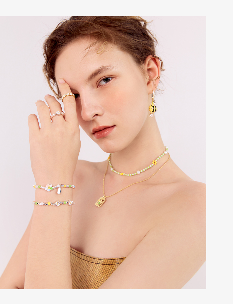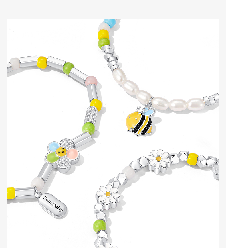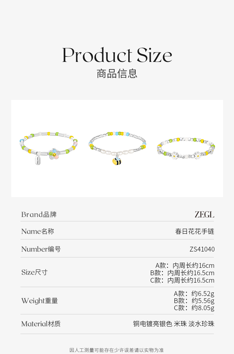 ZEGL设计师轻松春日系列小雏菊碎银子串珠手链女小众蜜蜂小花手饰